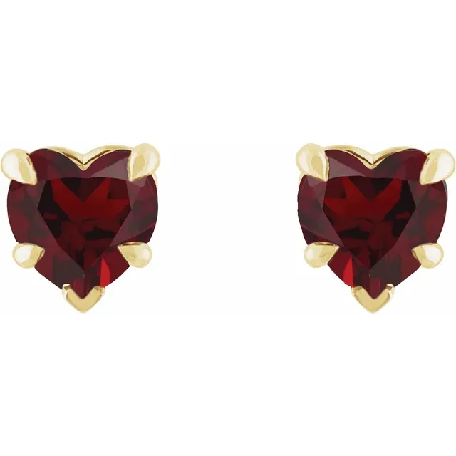 14K Garnet Heart Stud Earrings with Natural Diamond Accent