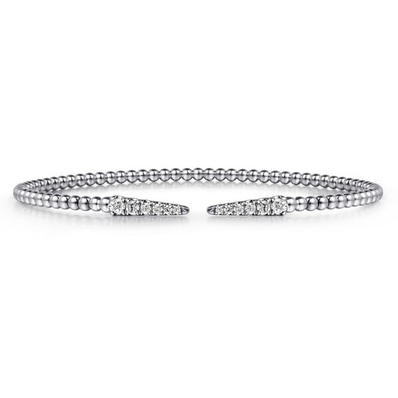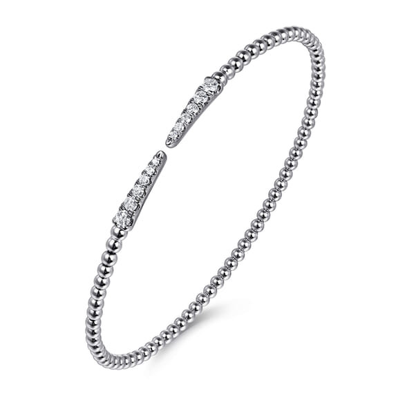 Crafted for the modern woman who appreciates both elegance and edge, this stunning bangle bracelet from Gabriel & Co.’s iconic Bujukan collection blends bold design with refined artistry. Made in lustrous 14K rose gold, the piece features a distinctive split cuff silhouette that wraps your wrist in graceful sophistication. Its unique Bujukan bead detailing brings texture and visual intrigue to the design, while expertly set diamond accents add a brilliant touch of sparkle that catches the light with every movement. Each bracelet carries a Gabriel Authentic Mark and a unique serial number, ensuring lasting quality and authenticity. Perfect as a statement on its own or layered with other favorites, this bracelet transitions seamlessly from daytime chic to evening glamour.