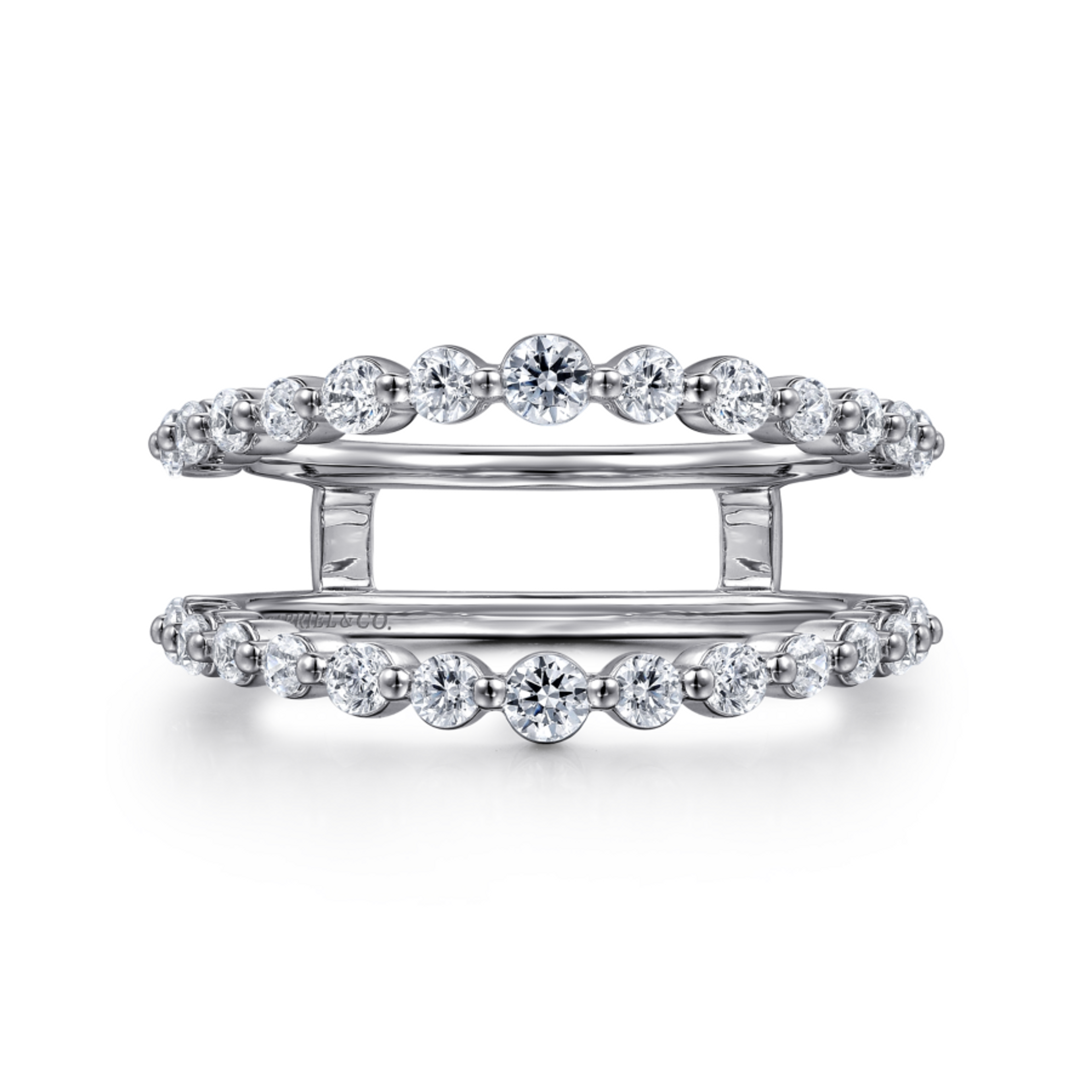 Designed to wrap around your own engagement ring, this gracefully contoured ring jacket is an ideal way to celebrate a wedding anniversary. This style features two strands of 14K gold encrusted in brilliant pave diamonds to expertly enhance your ring's sparkle.