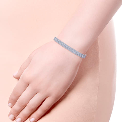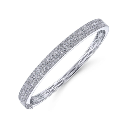 An ideal bangle for bracelet stacking, this minimal style offers a delicate foundation of segmented 14K white gold with four rows of stunning 1.83 ct diamonds. Versatile enough to wear solo or with a combination of luxury bracelets, accessorize effortlessly with this chic, Demure collection bracelet style.