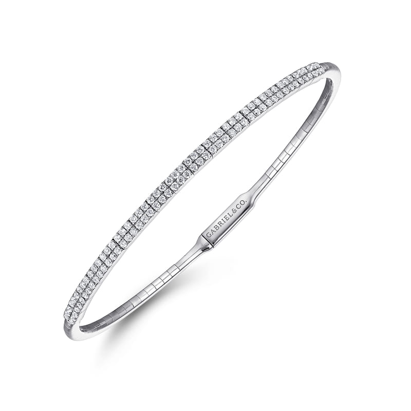 An ideal bangle for bracelet stacking, this minimal style offers a delicate foundation of segmented 14K white gold with two rows of stunning 0.70 ct diamonds. Versatile enough to wear solo or with a combination of luxury bracelets, accessorize effortlessly with this chic, Demure collection bracelet style.