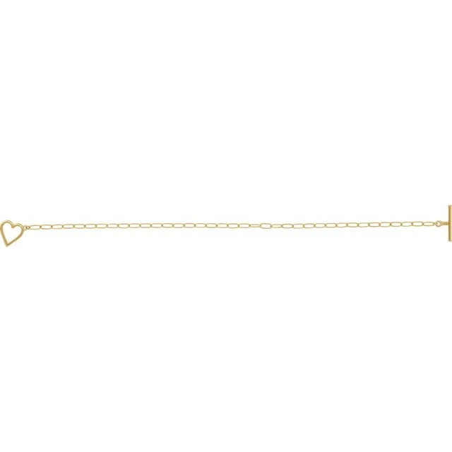 14K Heart & Paperclip-Style Chain 6" Bracelet