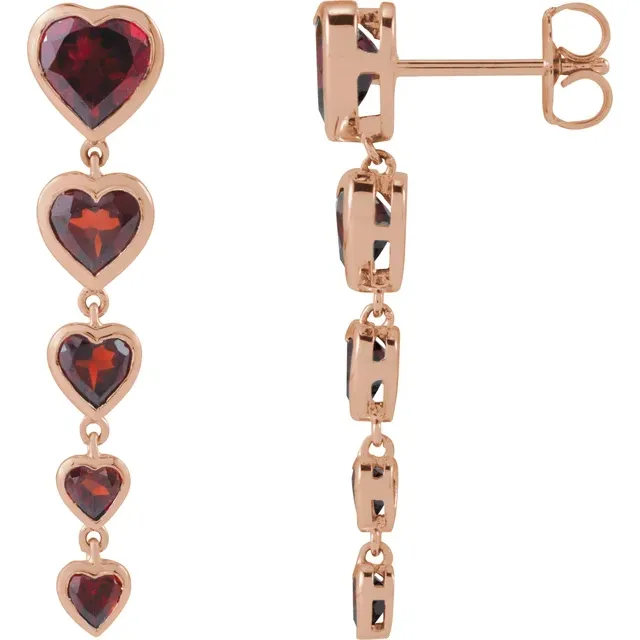 14K Natural Gemstone Heart Graduated Drop Earrings