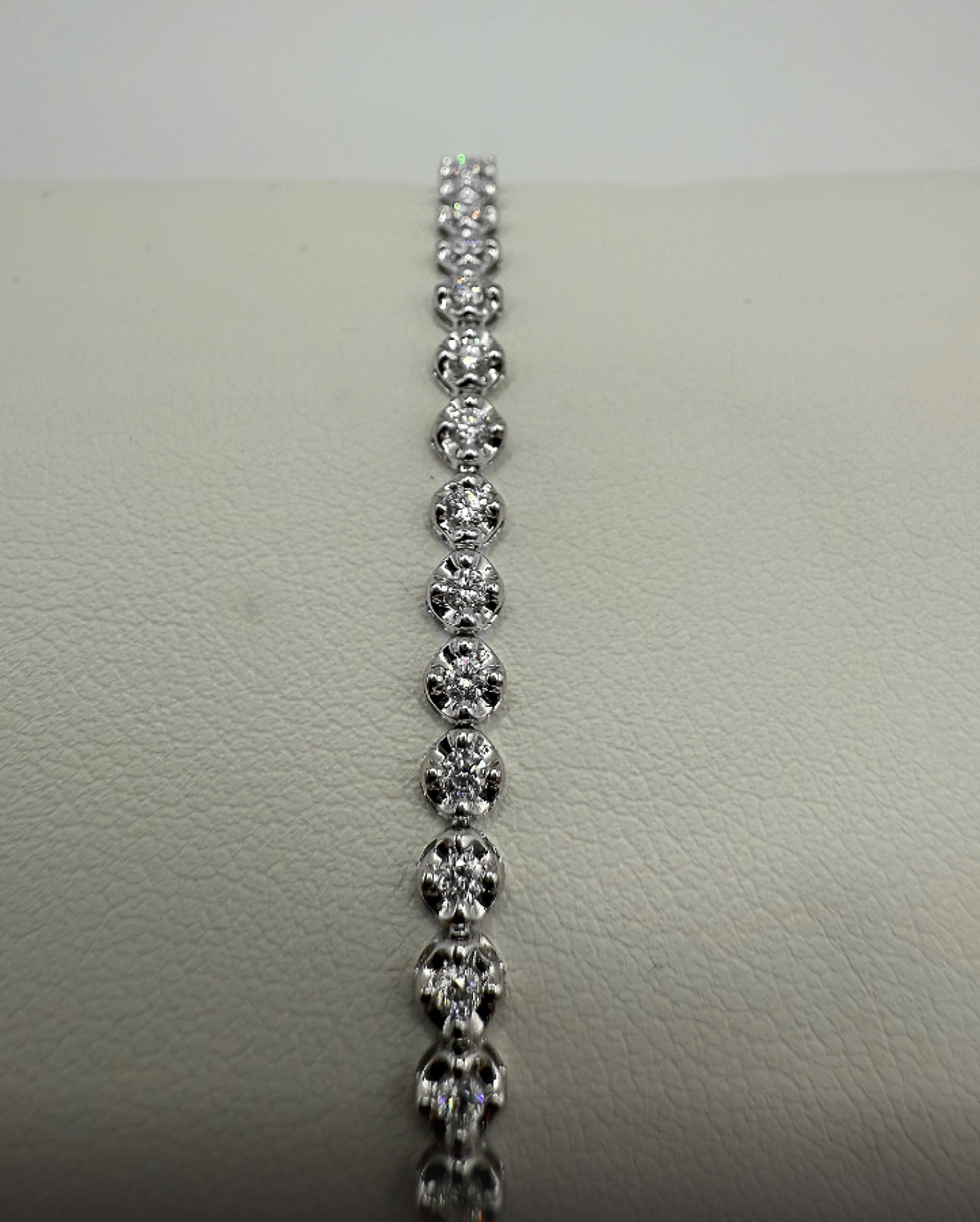 Please note that each bracelet varies slightly in total carat weight as each piece is made to order, with one-of-a-kind diamonds. Our carat weight ranges, denoted by fractions, ensure consistency across all our pieces, allowing for the least variance in ranges from the minimum to the maximum acceptable carat weights.