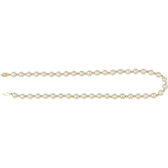 14K Yellow Bead and Cultured White Freshwater Pearl Necklace