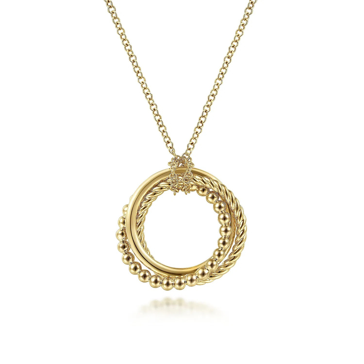 14K Yellow Gold Plain and Bujukan Beaded Interlocking Circles Pendant Necklace$650.00Gabriel & Co.View product