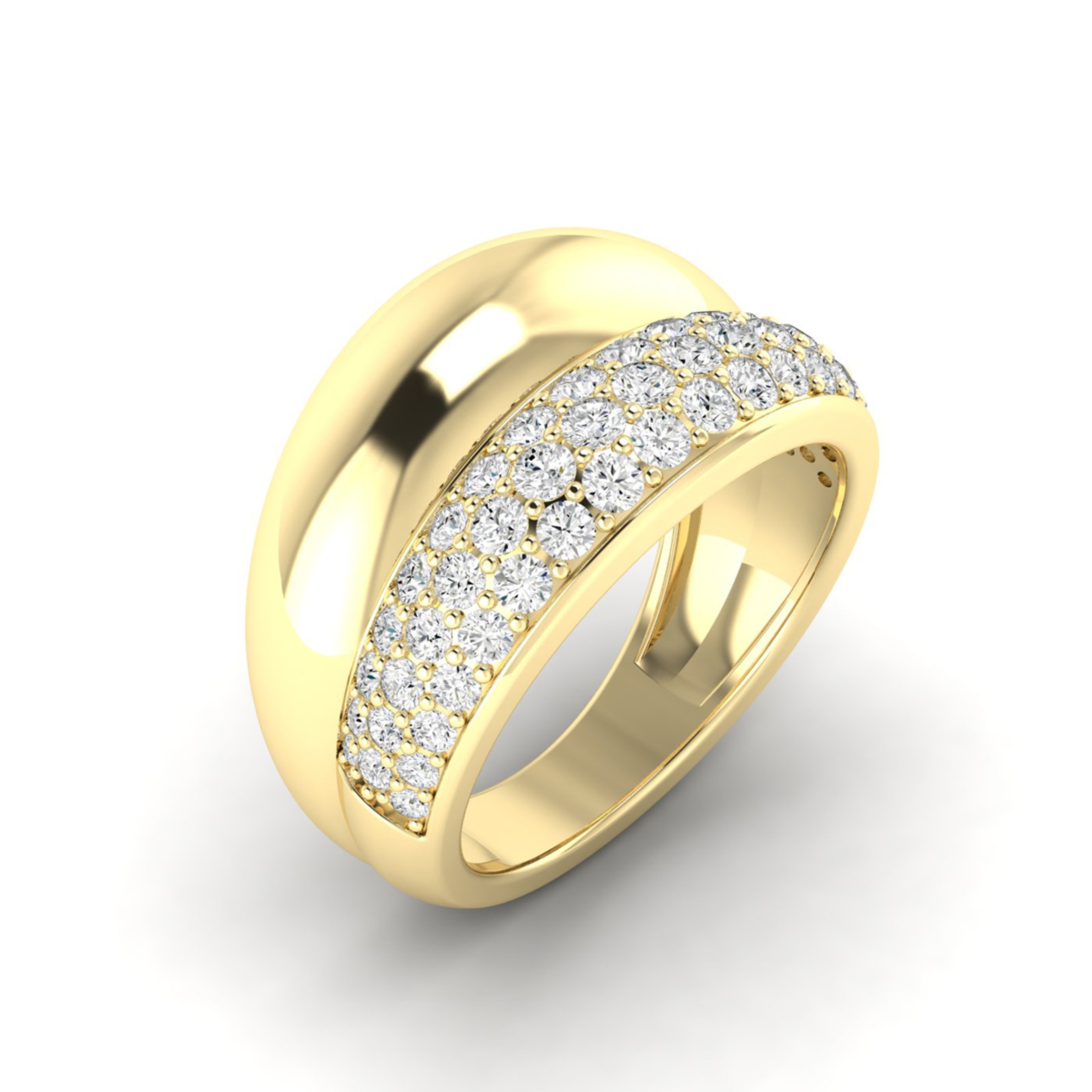 Adorn yourself with the celestial charm of the 14K Yellow Gold Pave Diamond Double Cloud Dome Ring. Featuring two gracefully domed bands, encrusted with shimmering pave diamonds, this exquisite piece radiates elegance and sophistication. Perfect for adding a touch of luxury to any outfit, this ring is a timeless treasure for your jewelry collection.