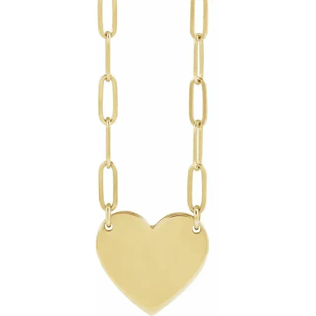 18K Yellow Gold-Plated Sterling Silver Engravable Heart 18" Necklace