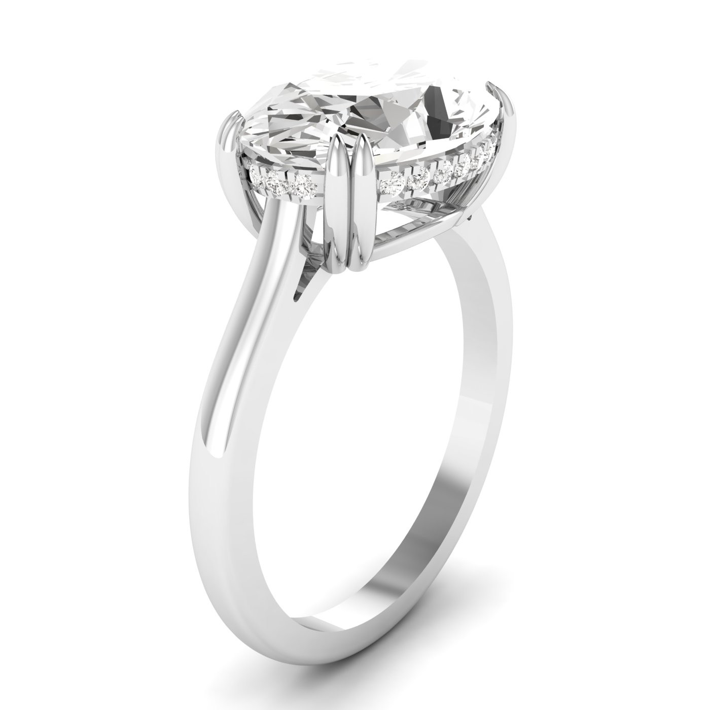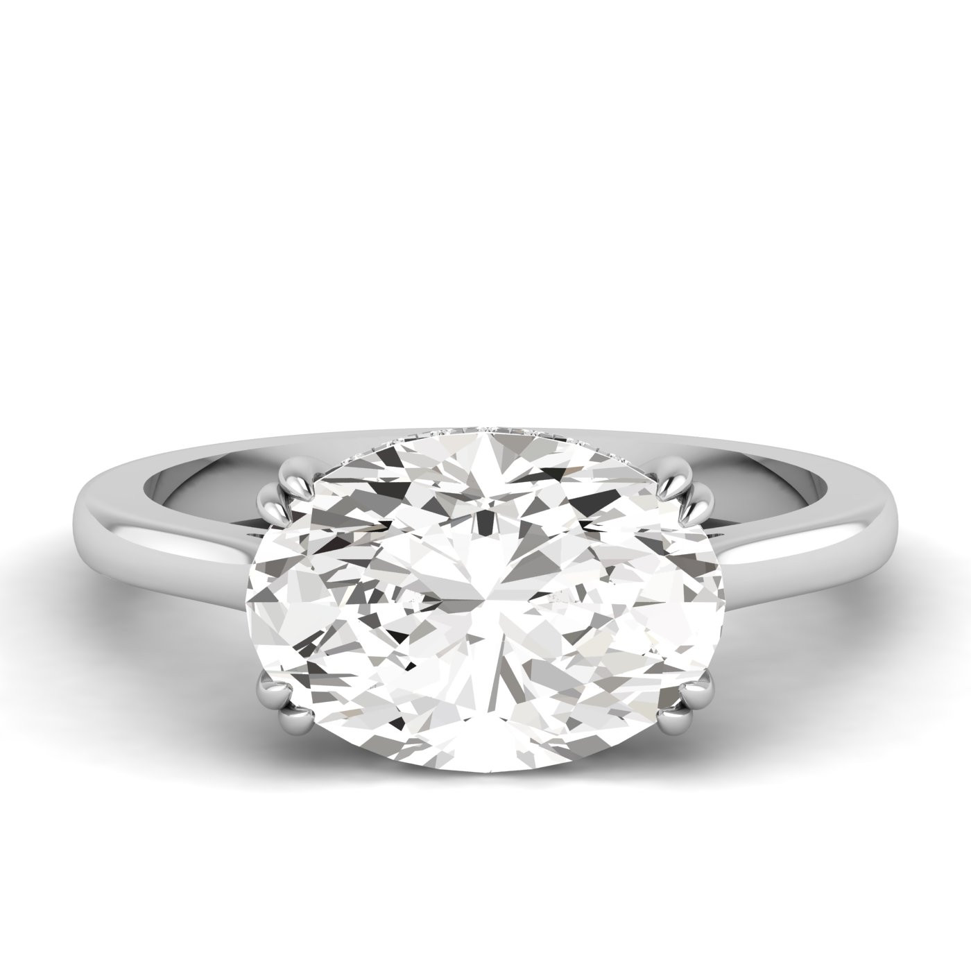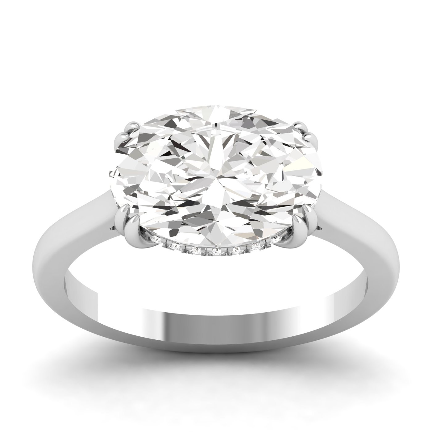 3.00ct Oval Lab Grown Diamond East West Hidden Halo with Claw Prong Preset Engagement Ring