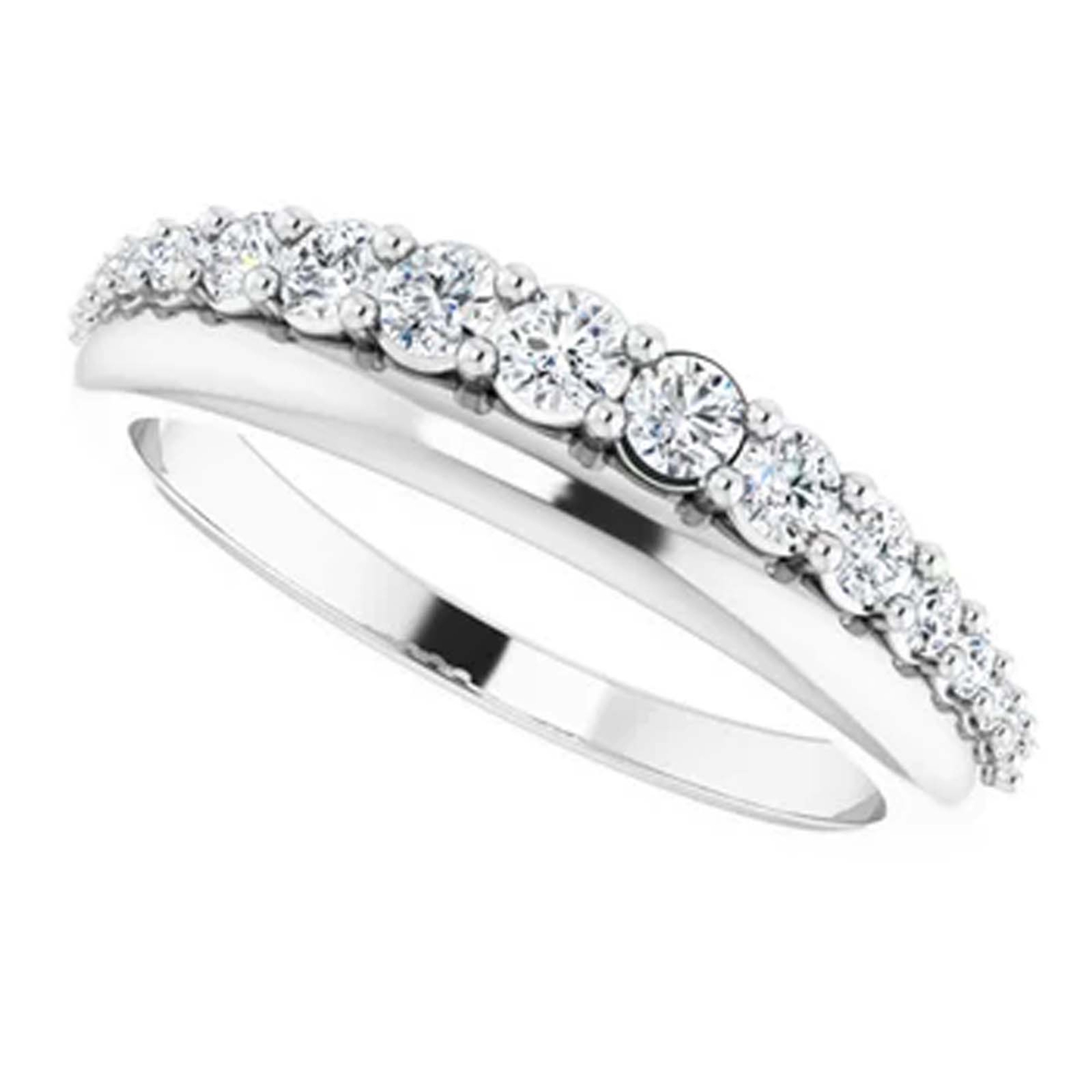 Our master jewelers have poured their heart and soul into crafting the Sally Round Diamond Anniversary Band. Every detail, from the prong settings that securely hold the diamonds to the polished band, reflects their dedication to perfection. Available in your choice of lustrous white gold, timeless yellow gold, or romantic rose gold, allowing you to select the metal that best resonates with your love story.