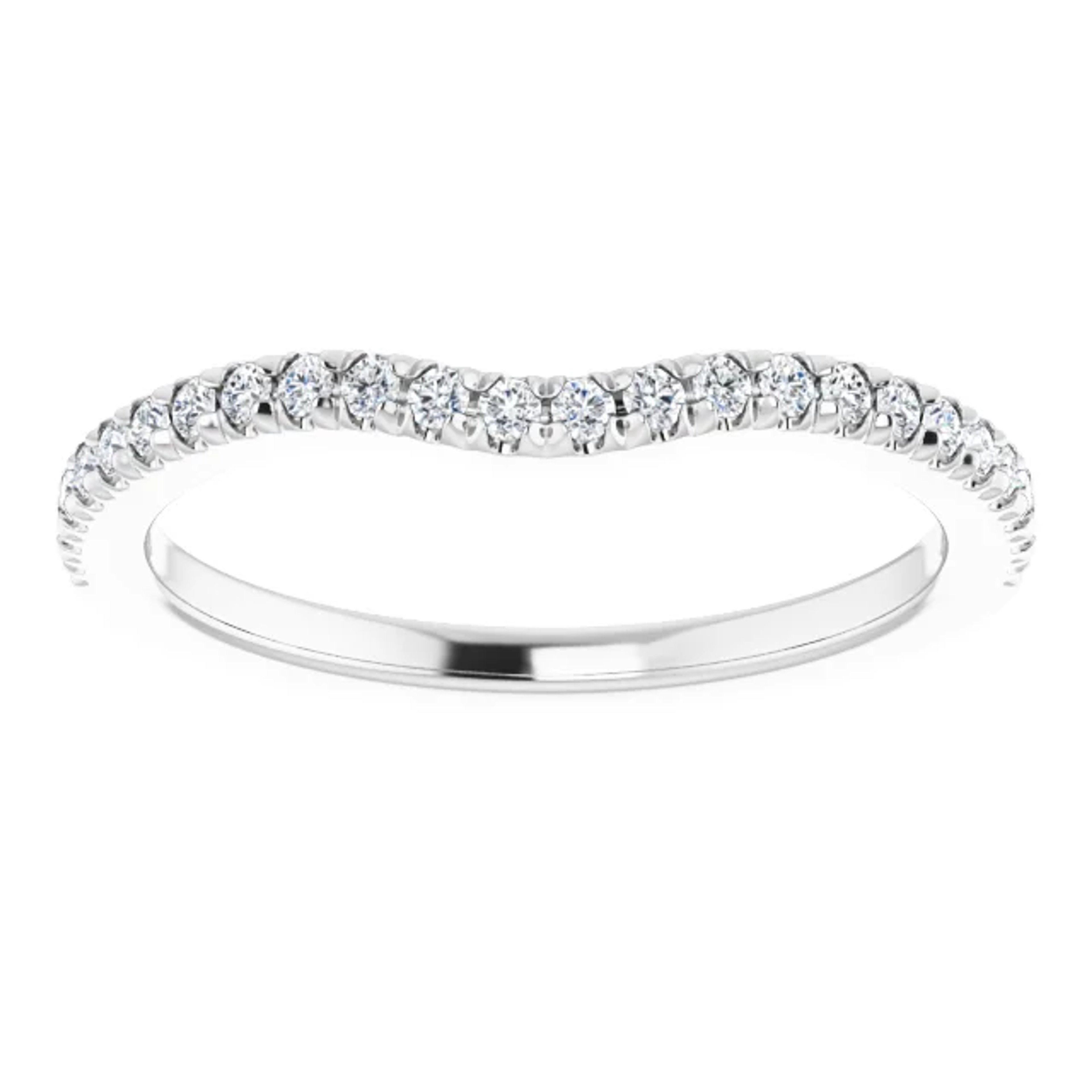 Your spouse will be ready to twist the night away when you give them this gorgeous criss cross eternity wedding ring. Perfect paths of diamonds are delicately twisted, symbolizing two amazing lives becoming one. This look is stunning in white, yellow or rose gold as well as platinum.