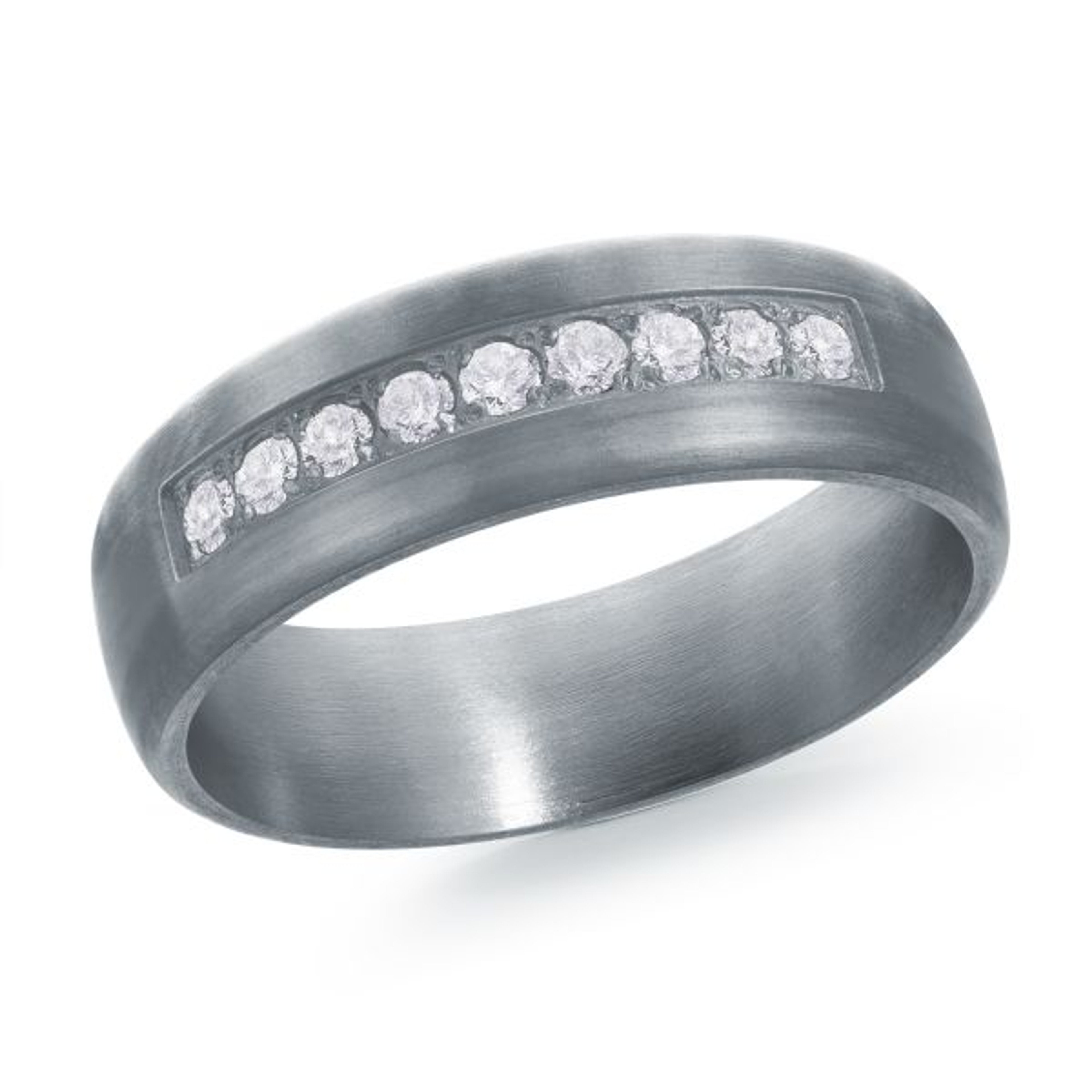 Life can come at you fast. Show your partner that you're ready to speed into your new love chapter. This bold, modern wedding ring is crafted in durable grey tantalum and laser-engraved with tiny intersecting lines, almost resembling tire tracks! They'll love this stylish, masculine look!