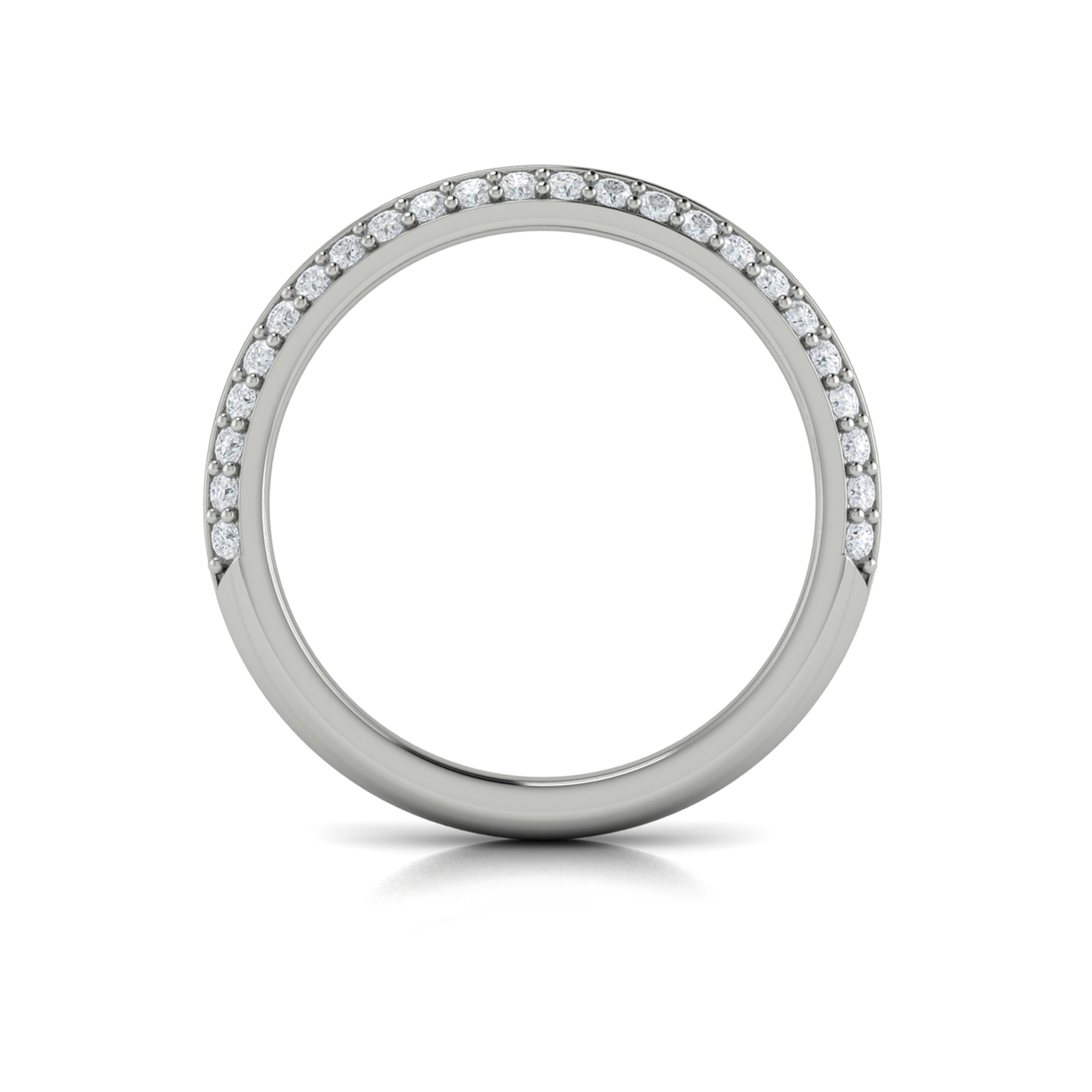 Introducing a new wedding band, the Bernadette Knife Edge Pavé Diamond Wedding Ring. This stunning piece features a sleek knife-edge band adorned with a half carat of dazzling pavé diamonds, creating a continuous sparkle that catches the light from every angle.