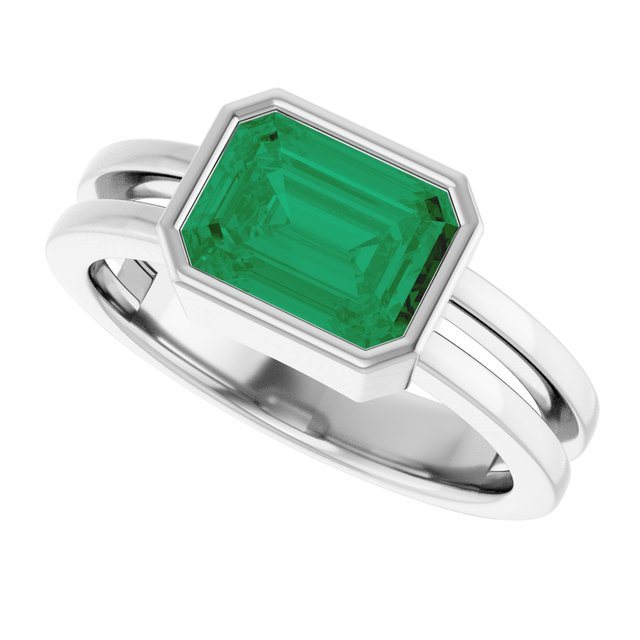 Dylan 14K Gold Bezel Set Emerald Moissanite Wedding Ring (1/2 CT DEW)