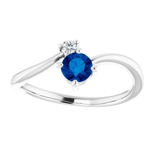 Blue Sapphire Bypass Ring with Diamond Accent Stone