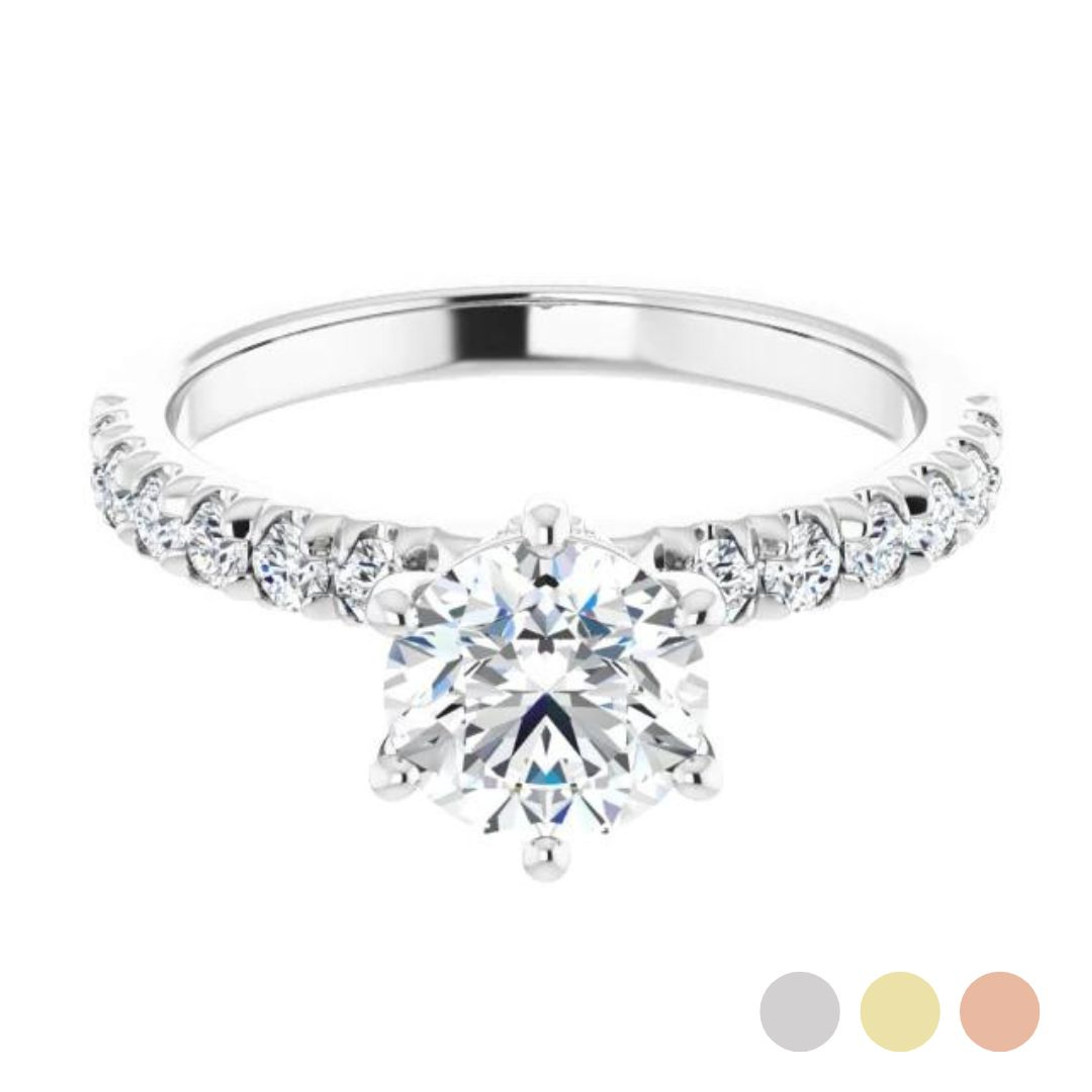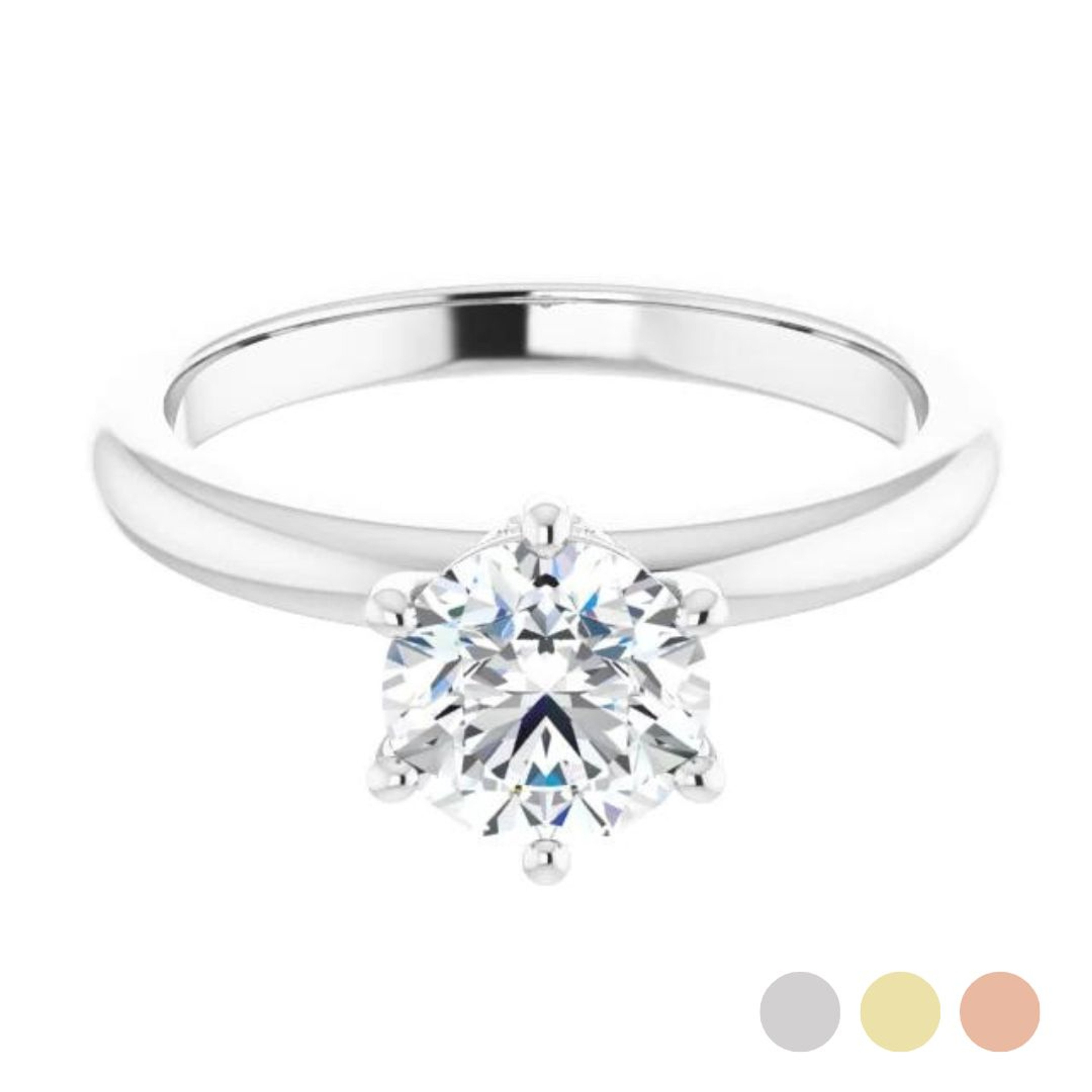 Setting only (center stone sold separately). Image shows a 1 carat round center stone.