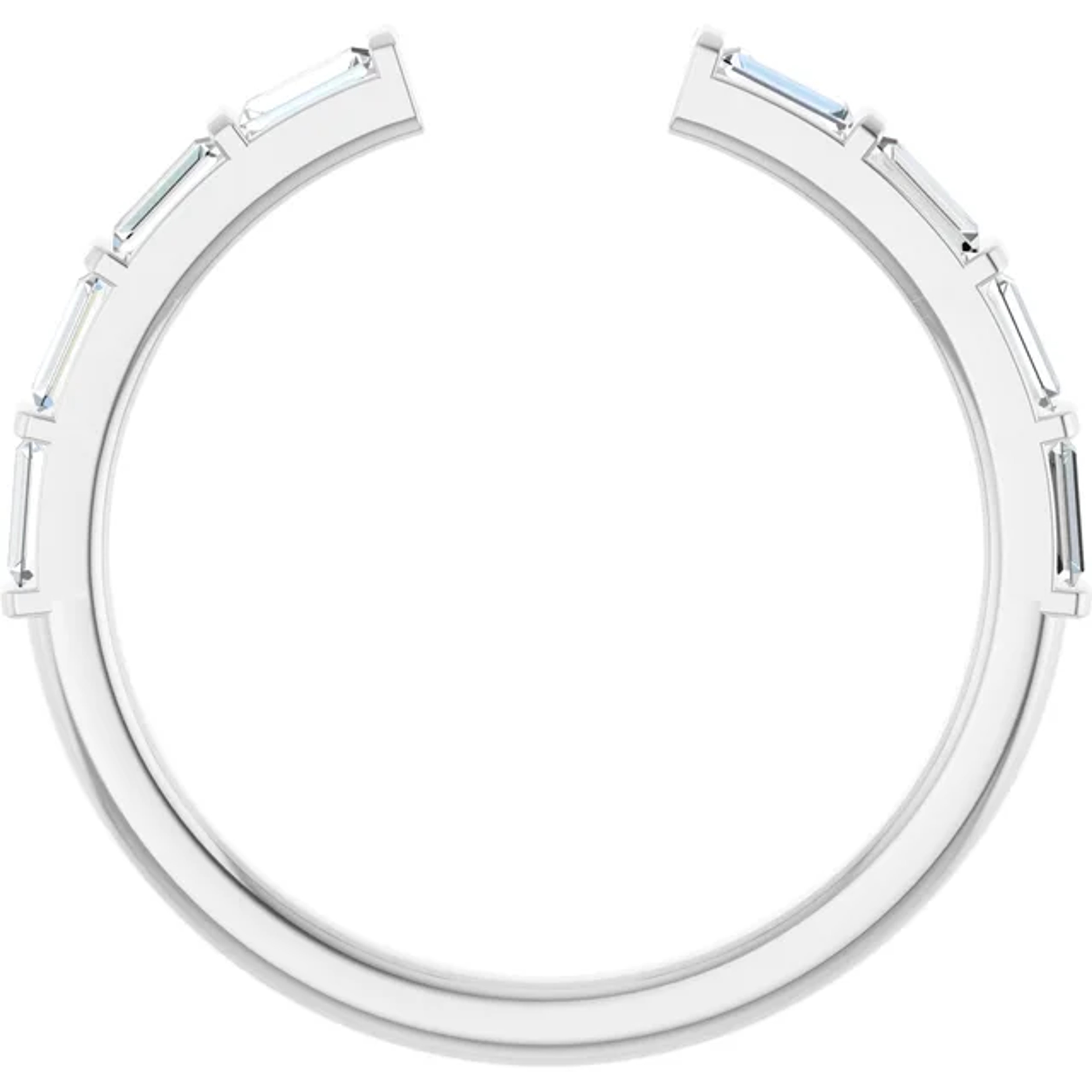 Gracefully intertwining classic allure with avant-garde aesthetics, this ring features a mesmerizing negative space design adorned with dazzling diamonds. The striking negative space creates an illusion of suspended brilliance, allowing light to dance effortlessly through the ethereal gaps, accentuating the radiance of each meticulously placed diamond.