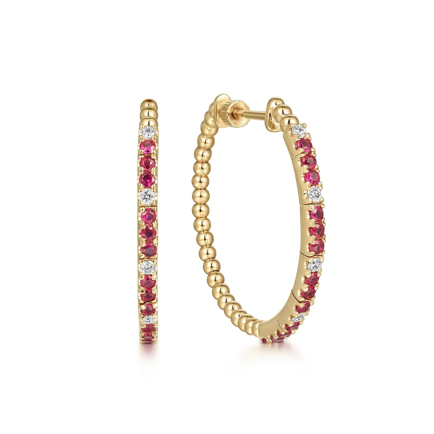 14K Yellow Gold Diamond and Gemstone Bujukan 30mm Classic Hoop Earrings