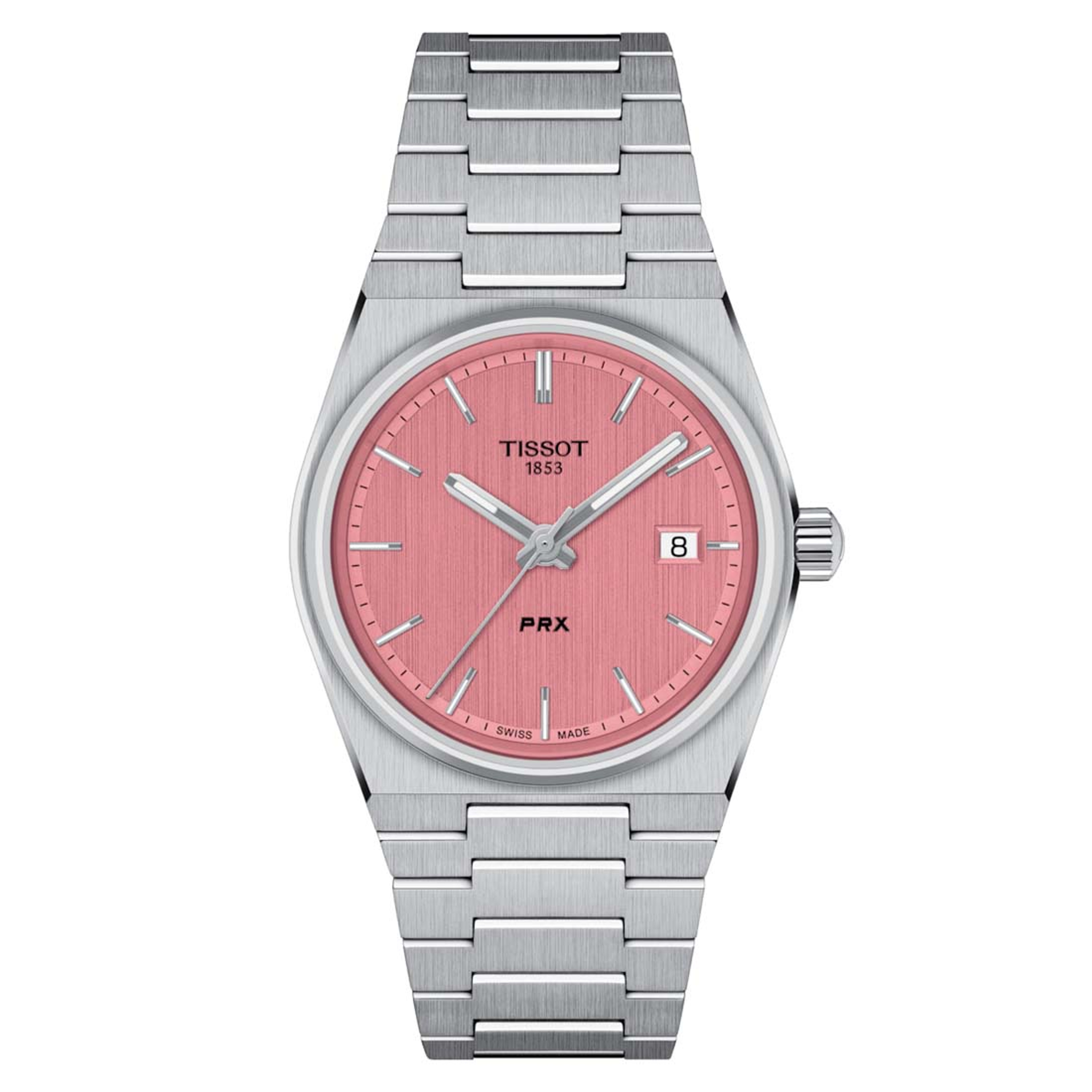 In 1978, the Tissot PRX was born. It is time to celebrate its comeback. The Tissot PRX is a watch for those with passion for design and an eye for ingenuity, with a sophisticated timeless retro look. A tapered and slim case and a solid, yet ergonomic stainless steel integrated bracelet make the PRX an iconic blast from the past but a modern sophisticated piece. The new PRX is exactly the same size as the original watch from 1978: 35mm - making it even more desirable. Discover this version with a pink dial for a feminine and classy look.
