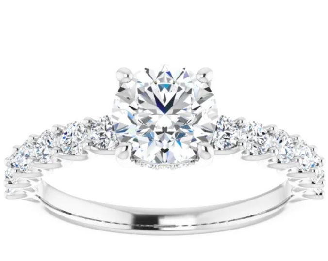 Corinne Straight Setting (hidden halo removed, ¾ of the way, higher set) in 14k White Gold Natural Diamonds: