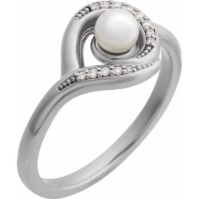 Cultured White Freshwater Pearl & 1/8 CTW Natural Diamond Ring