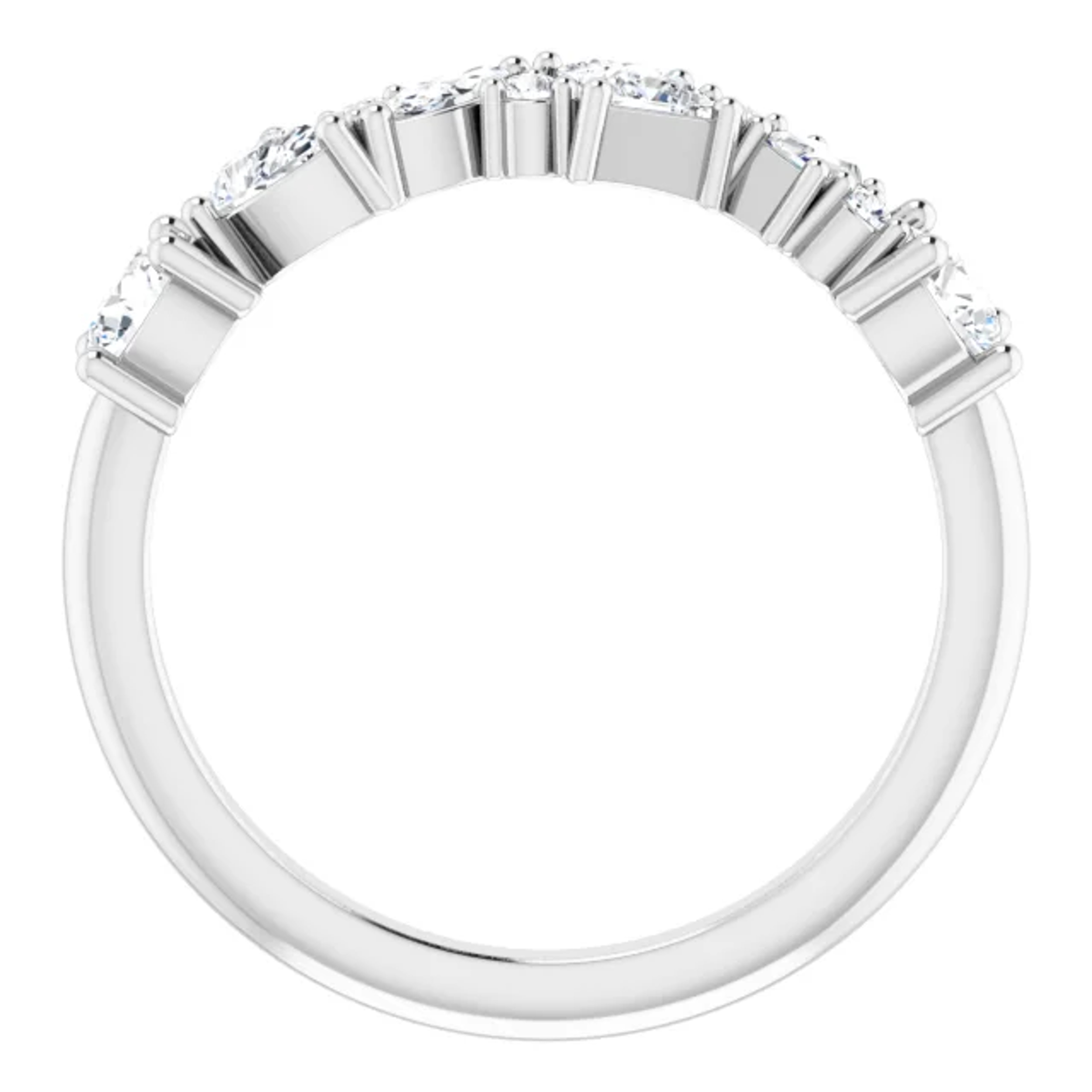 The multi-shape diamond anniversary ring is a true reflection of individuality and personal style. Its eclectic combination of diamond shapes showcases the uniqueness of the wearer's love story.