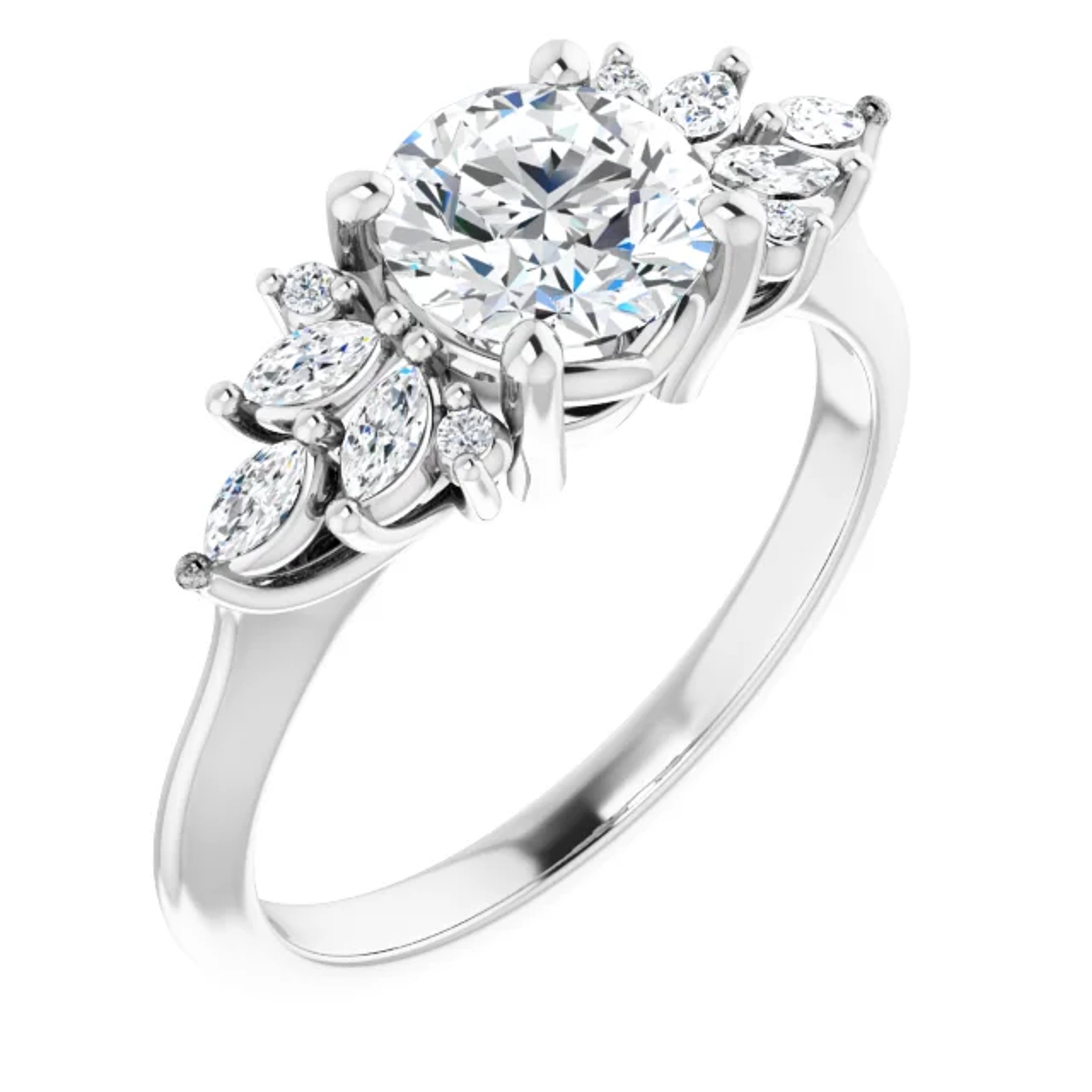 Setting only (center stone sold separately). Image shows a 1 carat round center stone.
