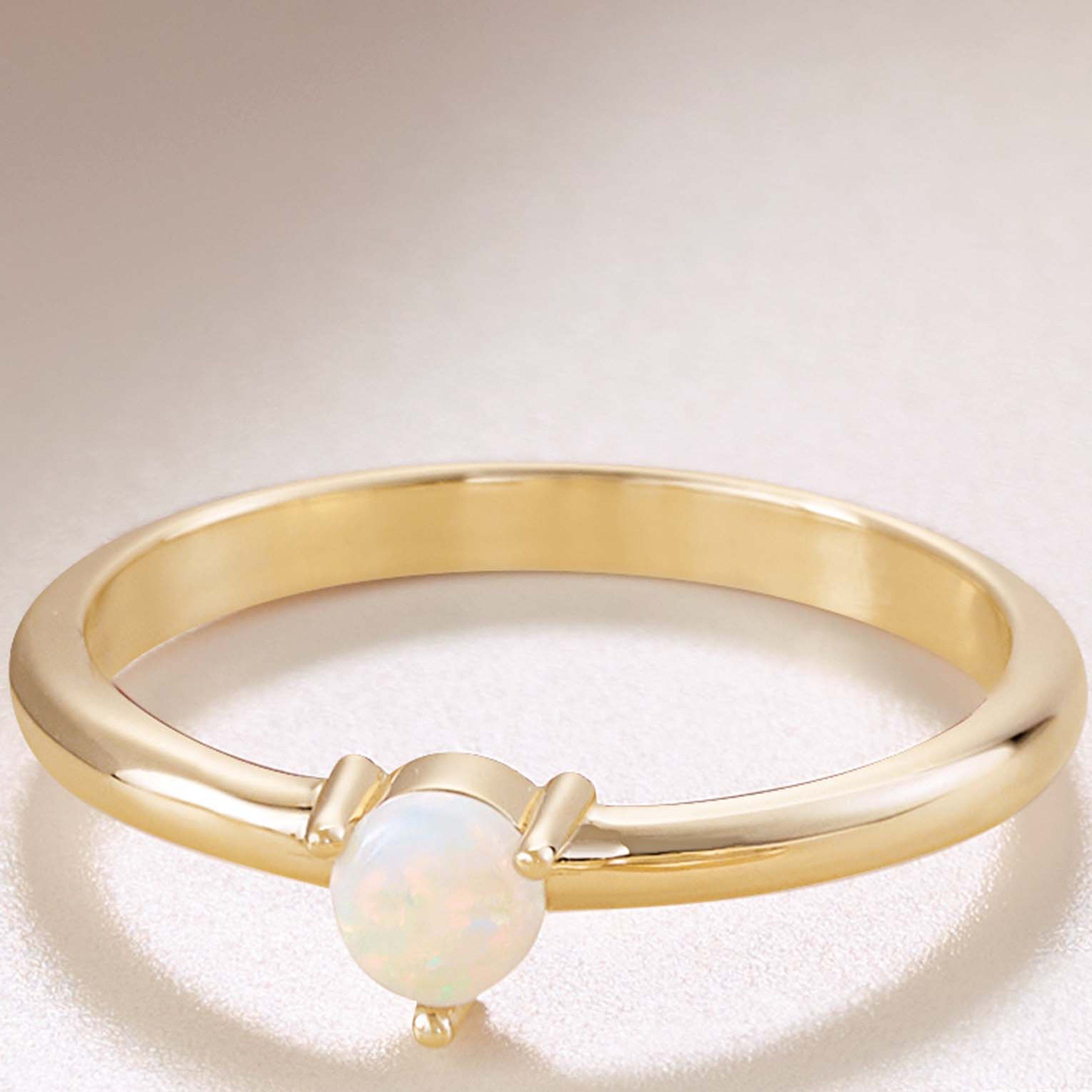 The Emeline ring features a single natural opal atop a solid 14K gold band.