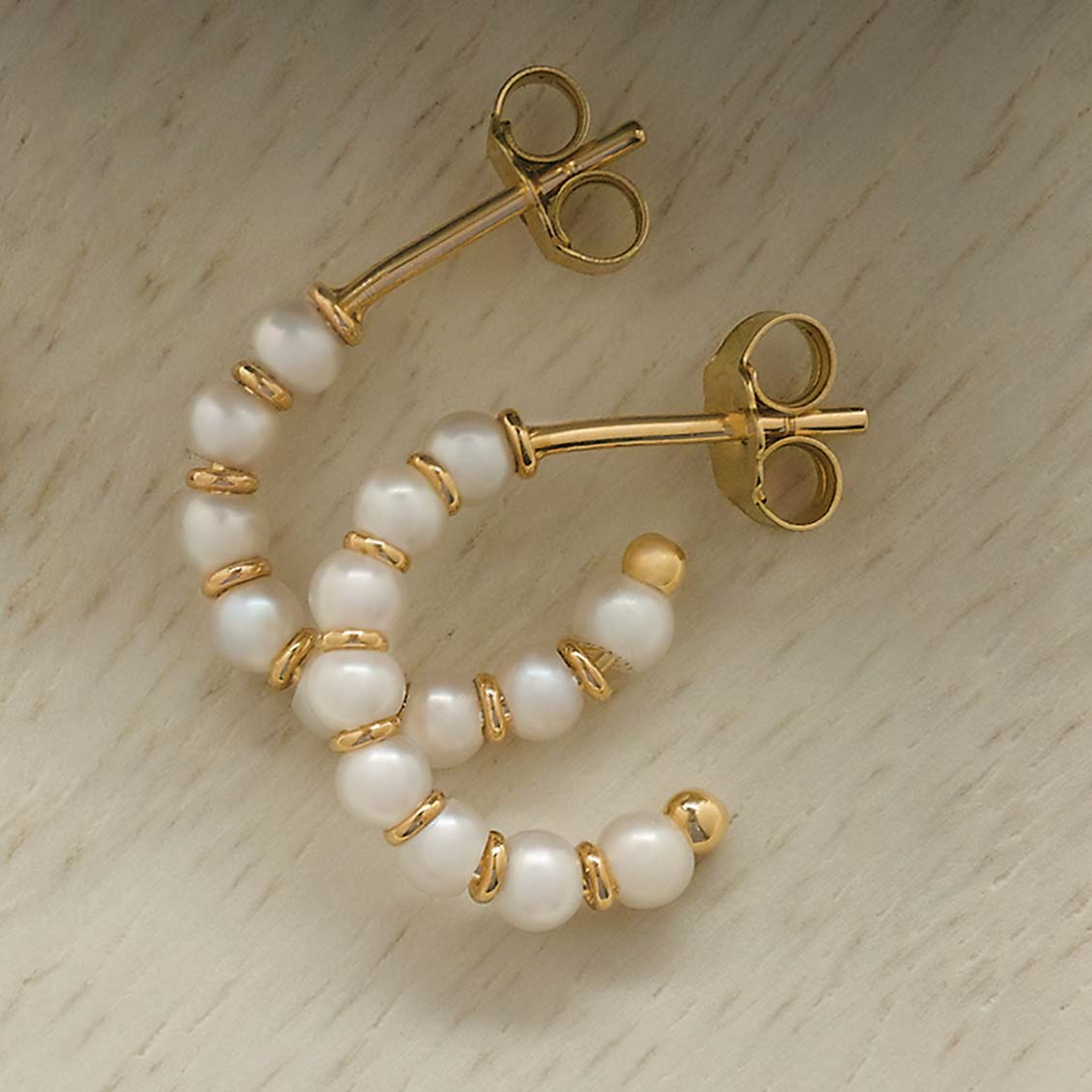 What's better than a perfect pearl? Why, 12 of course! These gorgeous hoop earrings are adorned with 8 perfectly-shaped pearls on each side. Each gem is linked with touches of 14K gold.