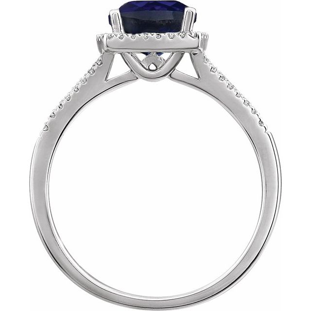 This elegant halo-style ring showcases a vibrant cushion-cut colored gemstone at its center, surrounded by a halo of brilliant natural diamonds set in luxurious 14K white gold. The refined design blends classic sophistication with contemporary sparkle — perfect for gifting or elevating your own jewelry collection.