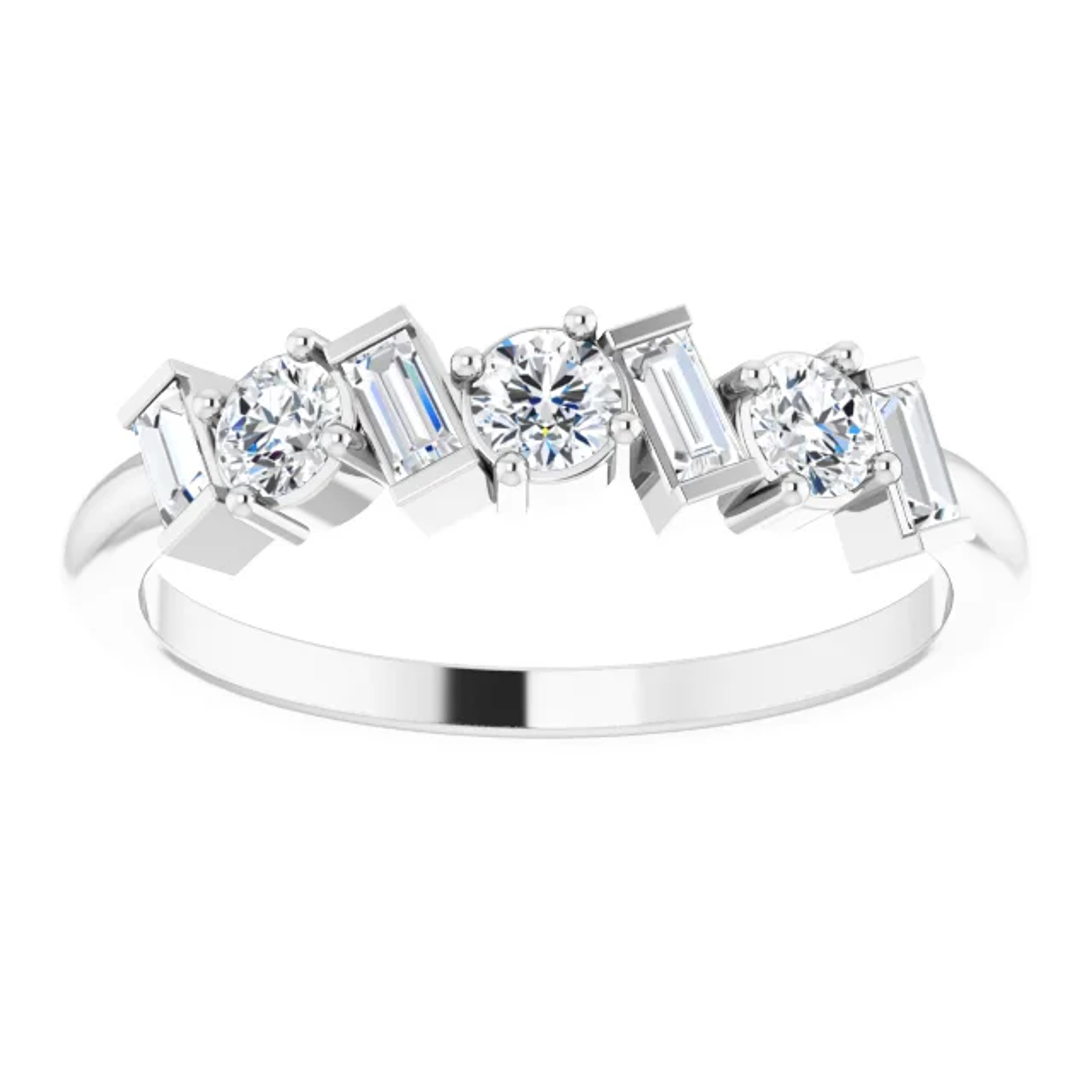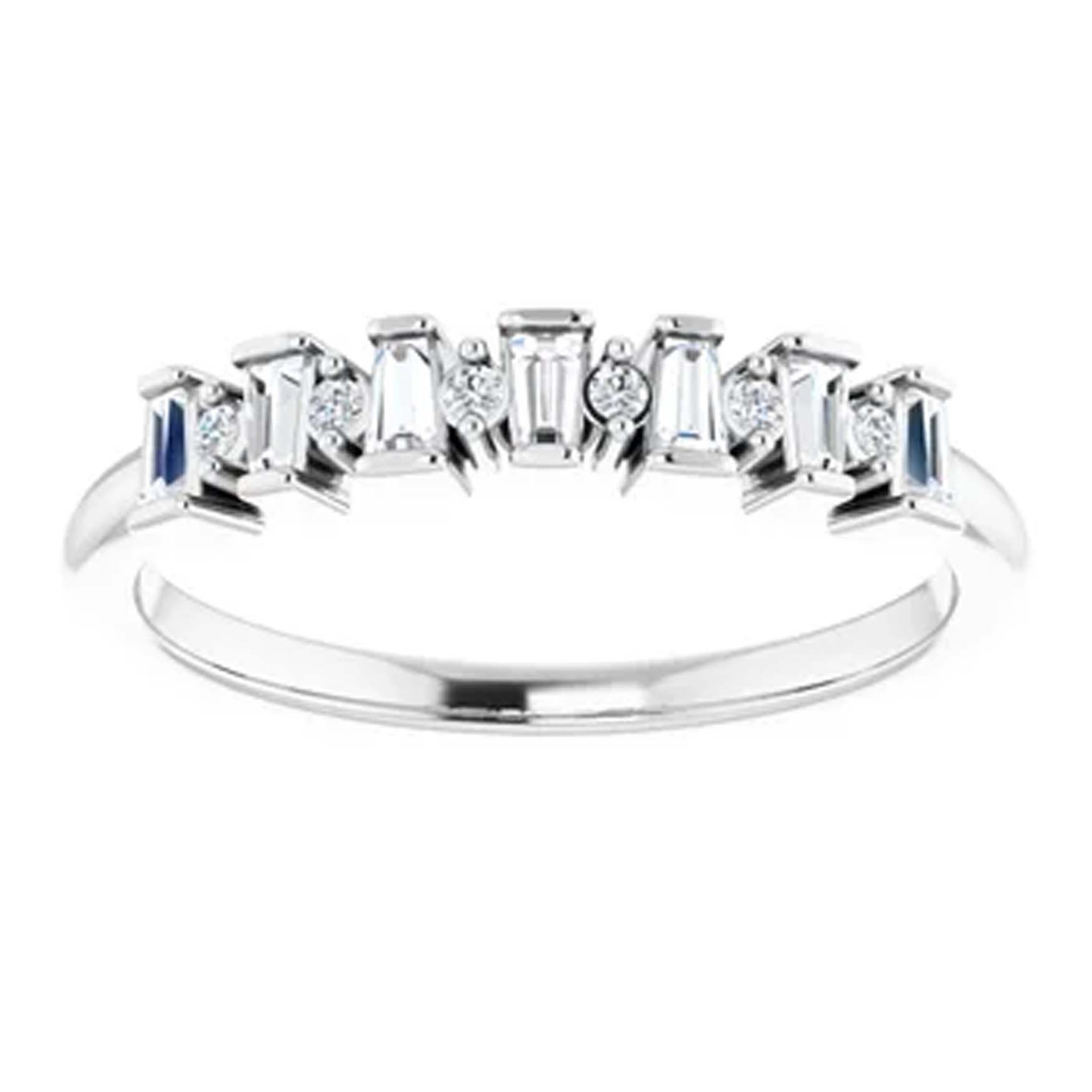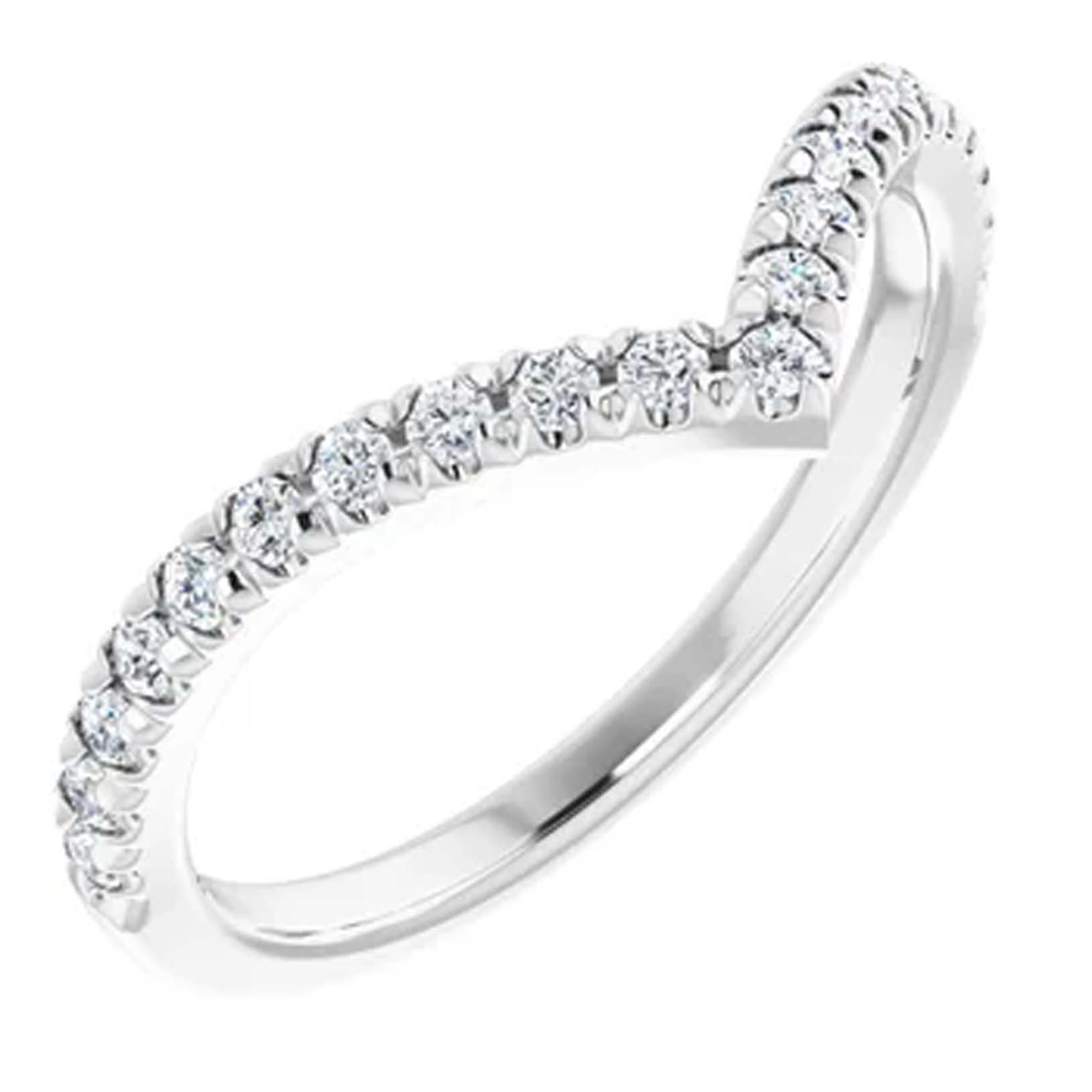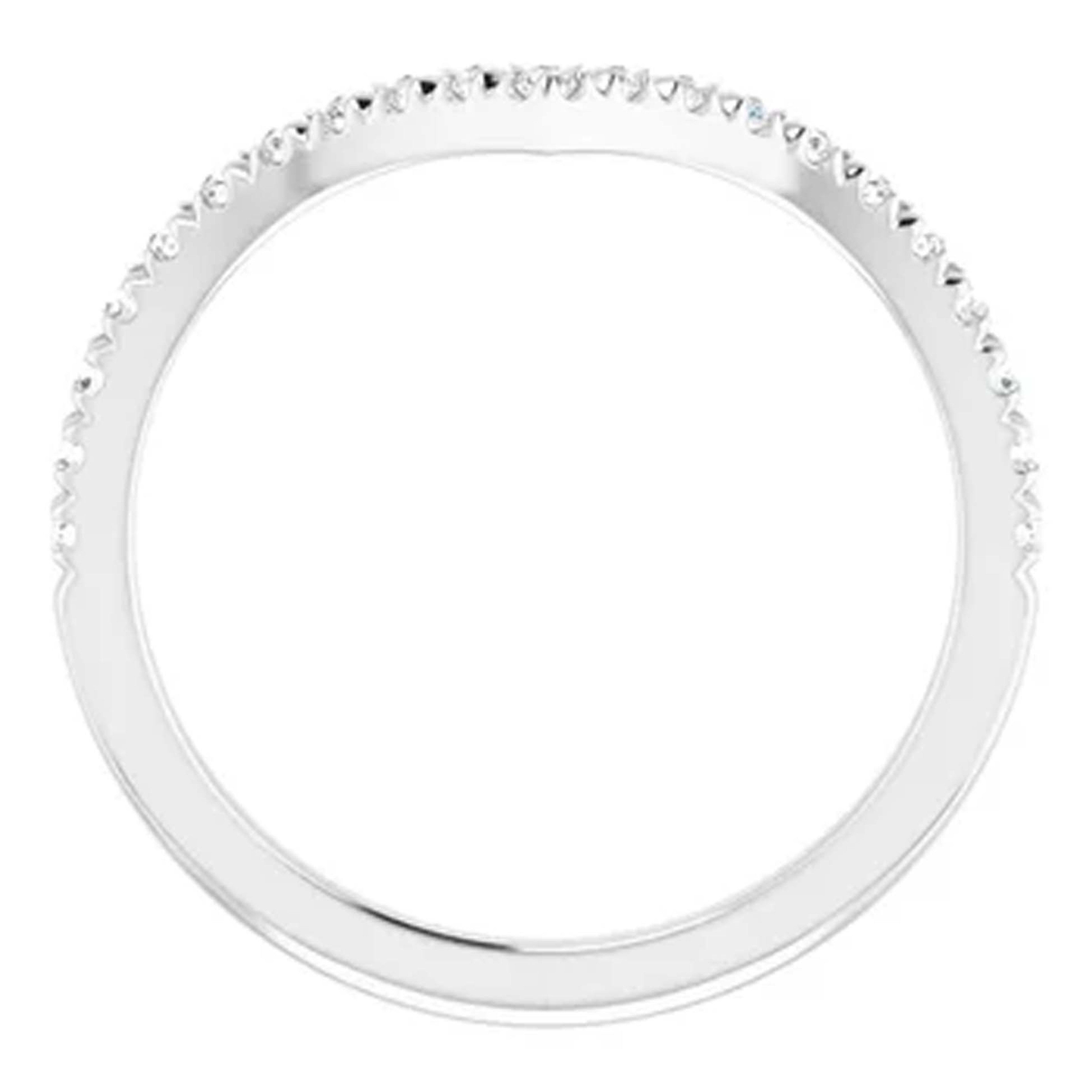 The contour design of this band is a work of art in itself, carefully crafted to sit flush against your engagement ring, creating a harmonious union of elegance and grace. It seamlessly complements your existing ring, enhancing its beauty while adding an extra layer of sophistication.