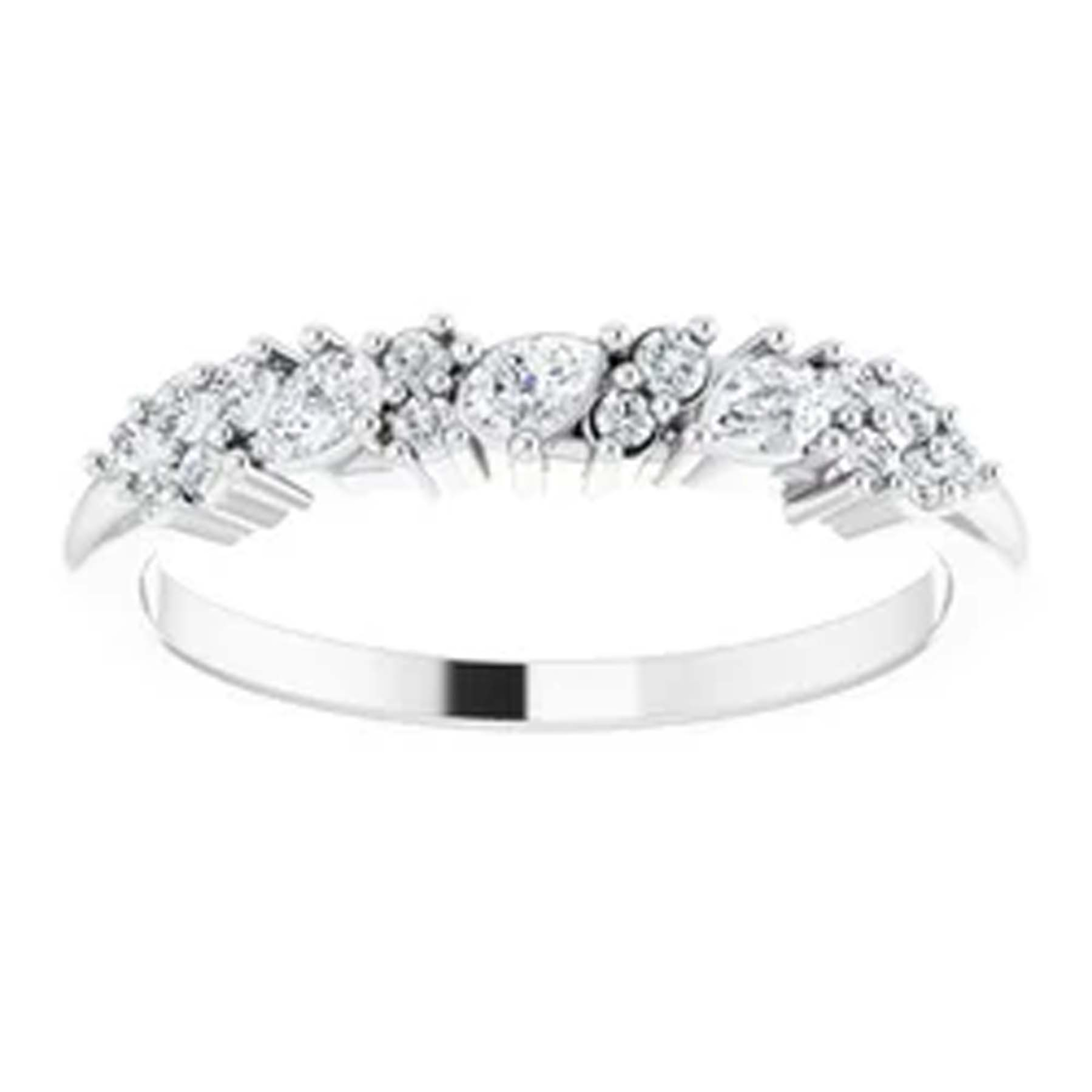 The contour design of this band is a work of art in itself, carefully crafted to sit flush against your engagement ring, creating a harmonious union of elegance and grace. It seamlessly complements your existing ring, enhancing its beauty while adding an extra layer of sophistication.