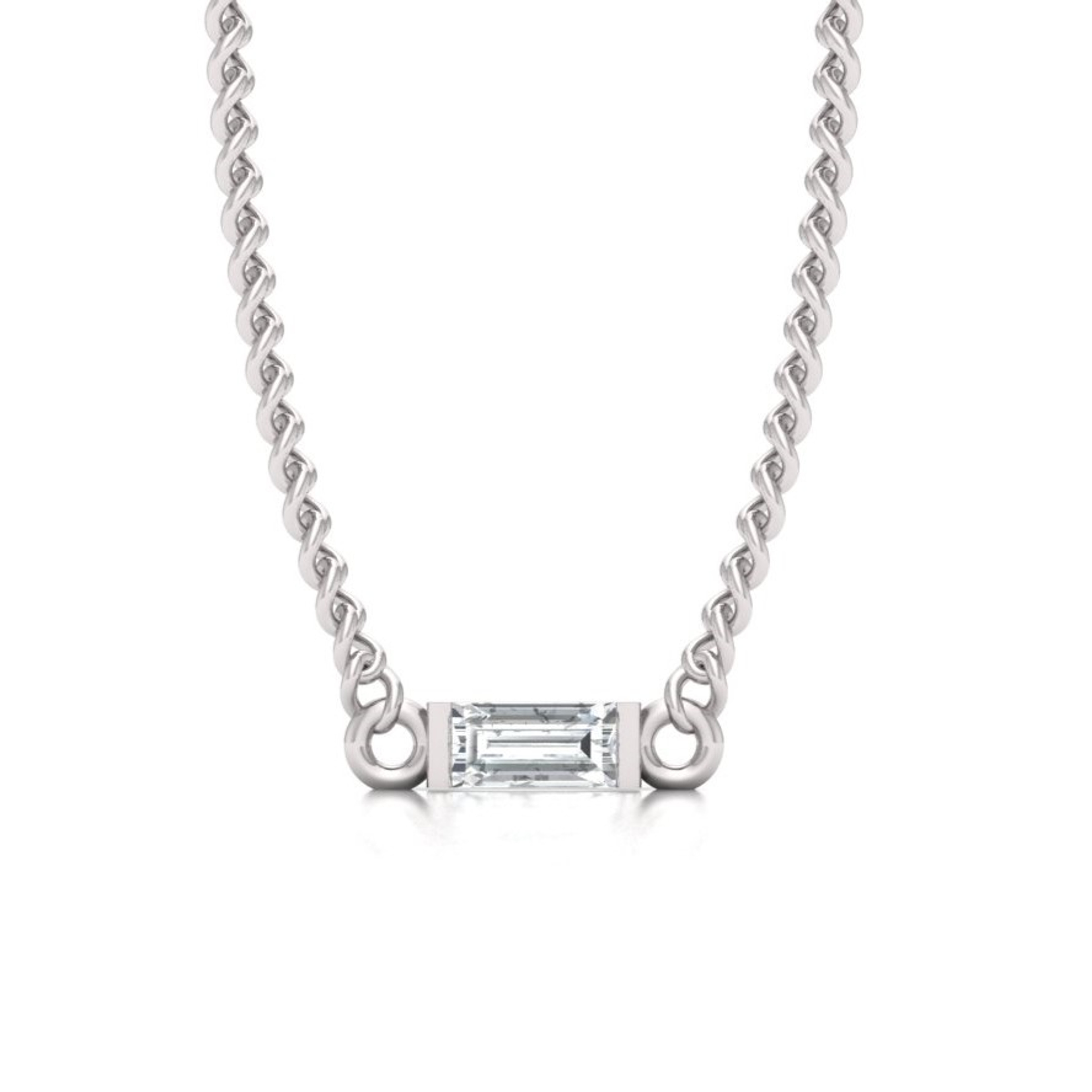This Baguette Diamond Pendant Necklace is the definition of sleek and clean. The minimalist design adds a touch of contemporary elegance, making it a versatile accessory.