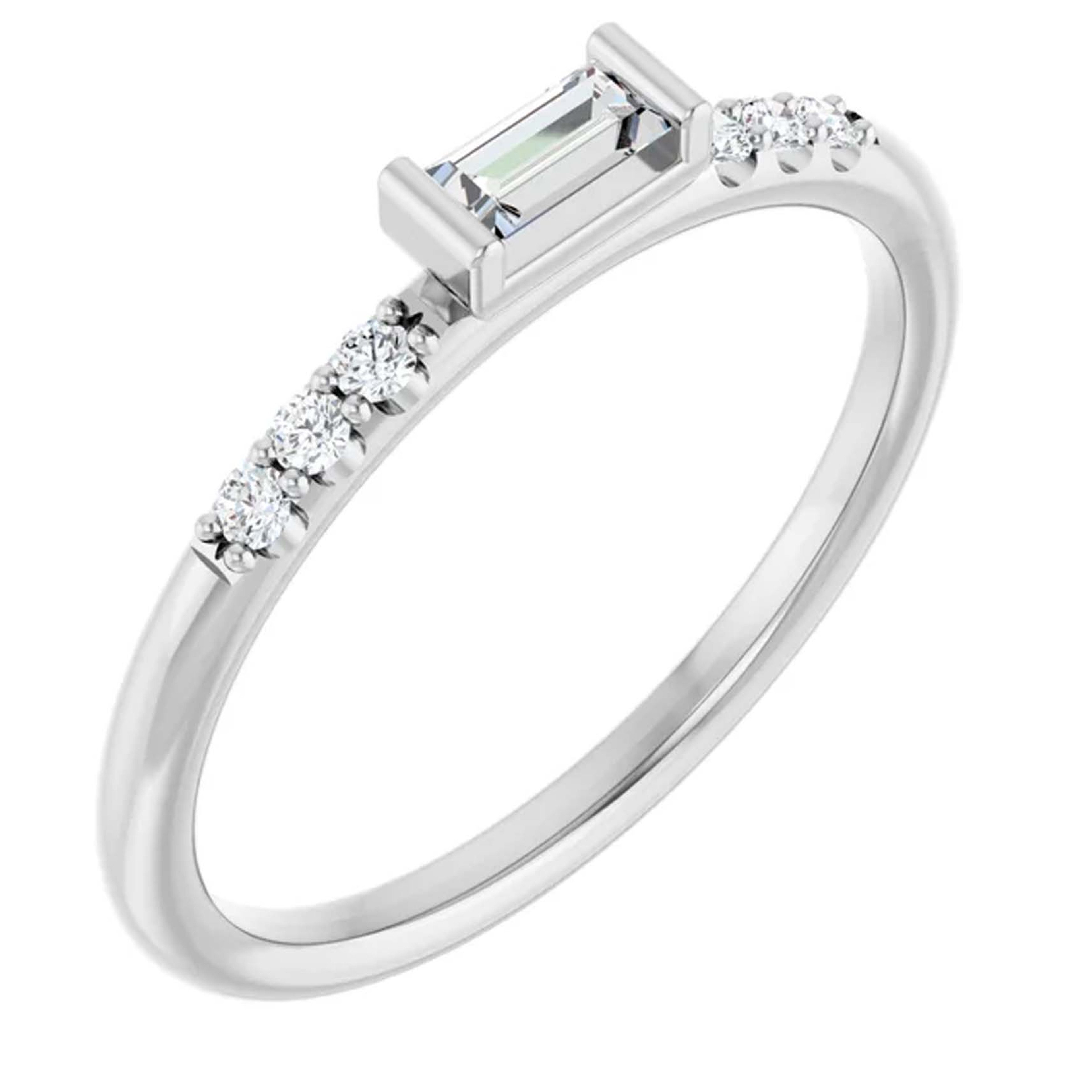This product features one 14k gold baguette diamond ring guard. This ring is the perfect accent piece for your engagement ring.