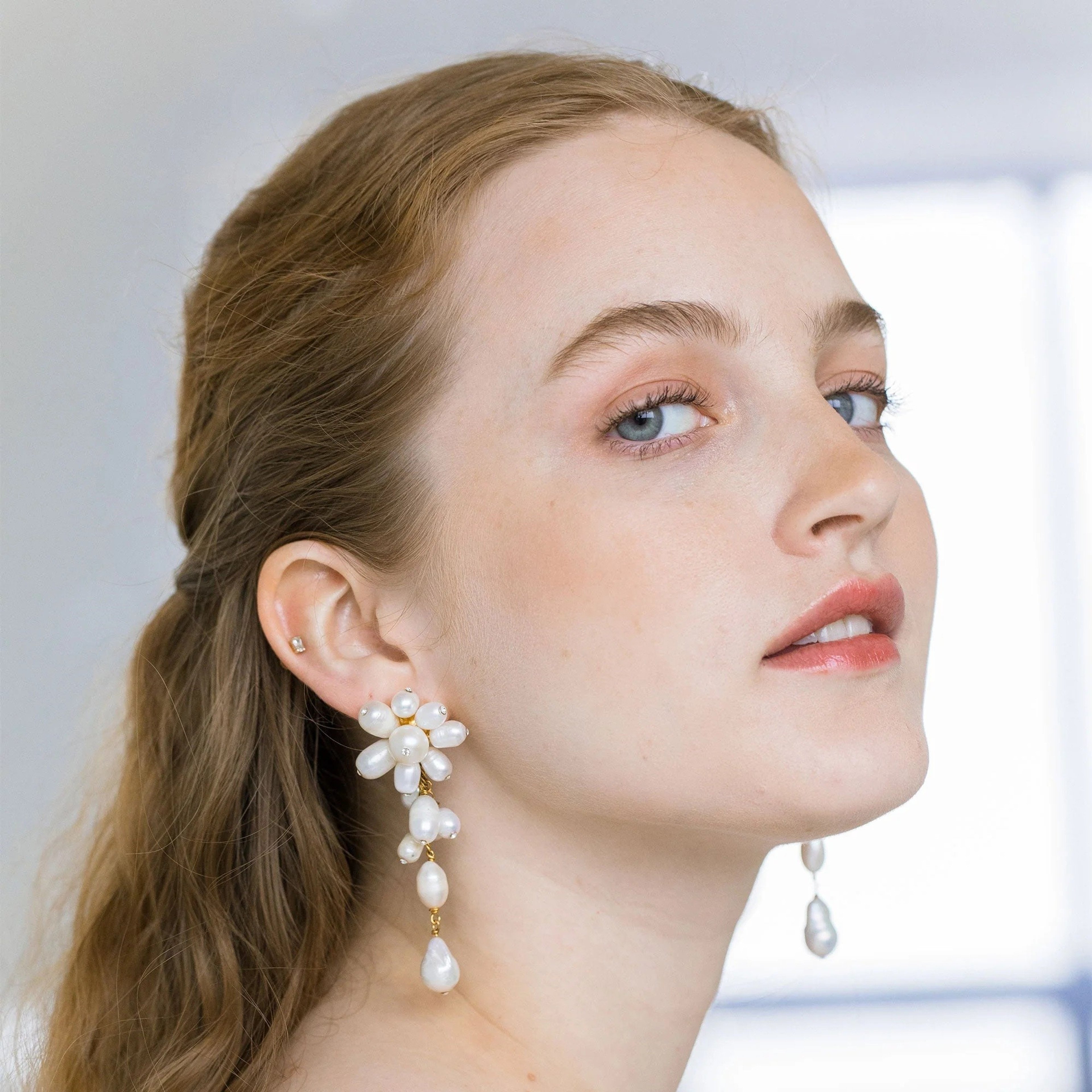 Bursting with pearls, the Florence Earrings are our preferred way to infuse any look with romance. The freshwater baroque pearls are punctuated by diminutive crystals, and cascade elegantly on delicate golden chains, creating the most graceful movement. They're designed to be lightweight on the ears, encouraging you to dance the night away.