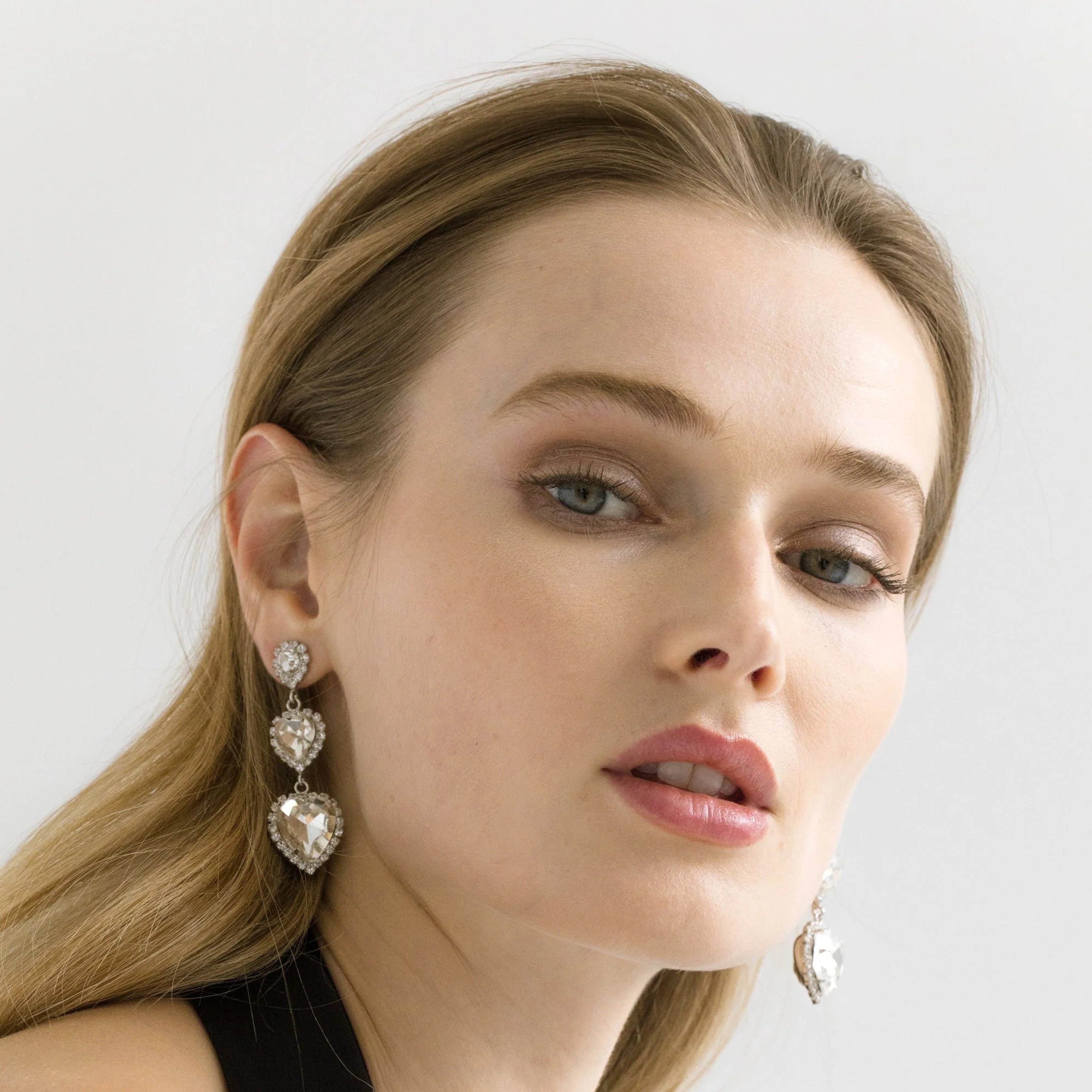 With their modern approach, the Hartley Earrings are total nirvana for romantics and minimalists alike. This statement earring features double heart drops, with each stone enveloped in a generous halo of crystal sparkle. Their gentle movement engenders romance at every turn.