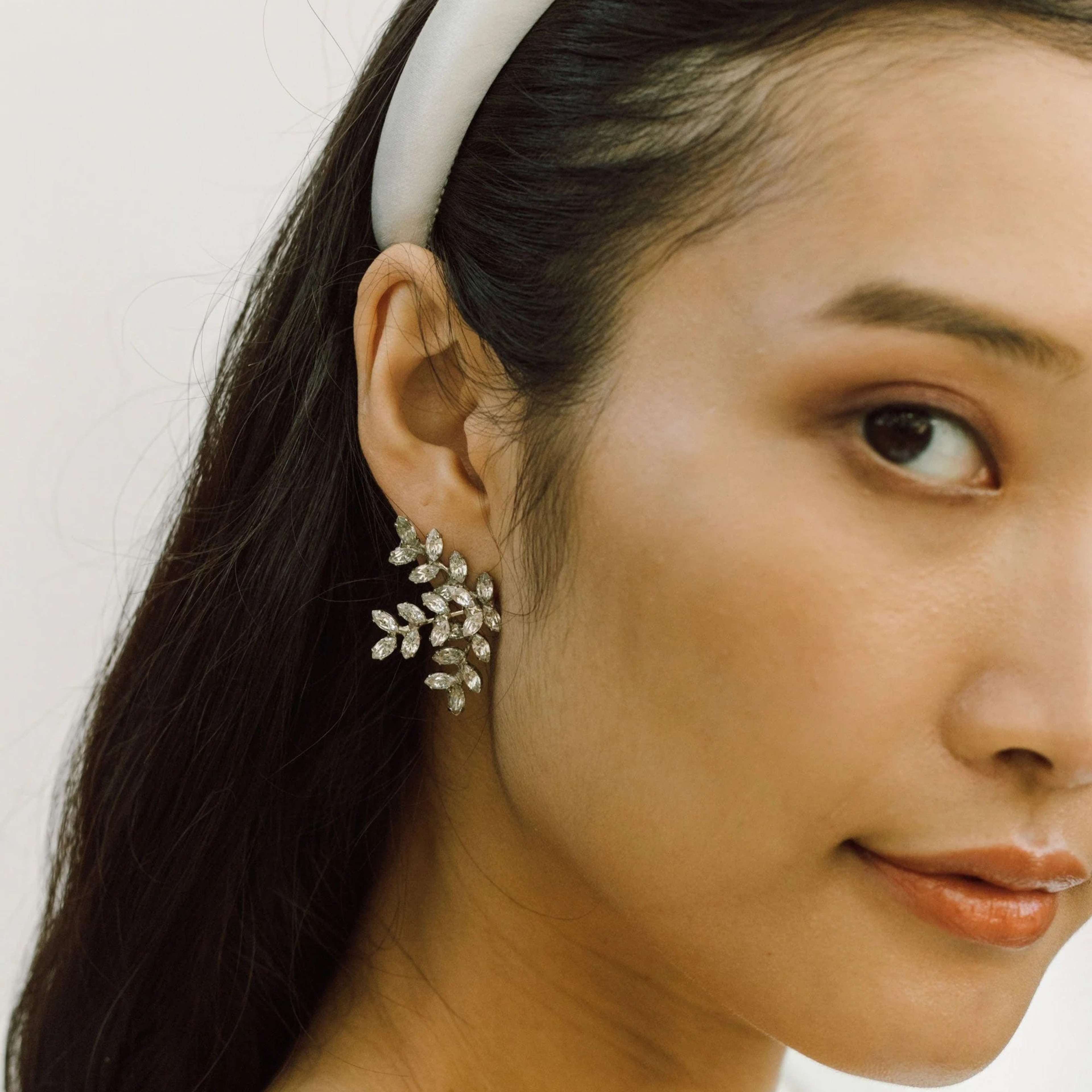 The Viniette Earrings are intricately crafted from crystals. Each crystal is set my hand in a process that creates the most possible sparkle! The delicate branch shape and icy crystal clusters make these feel like the perfect feminine accoutrement to your year-round wardrobe. Weight: 4.5g each