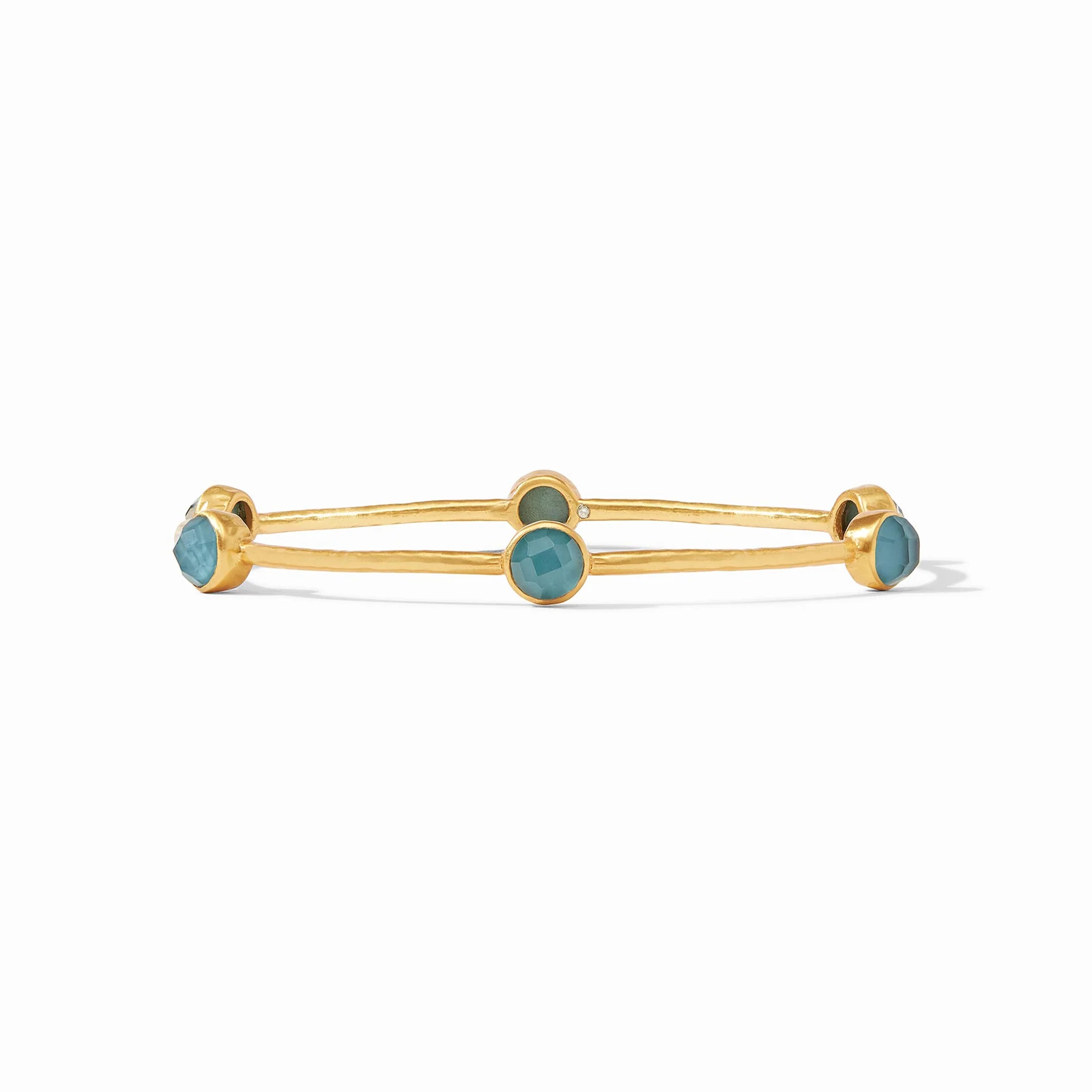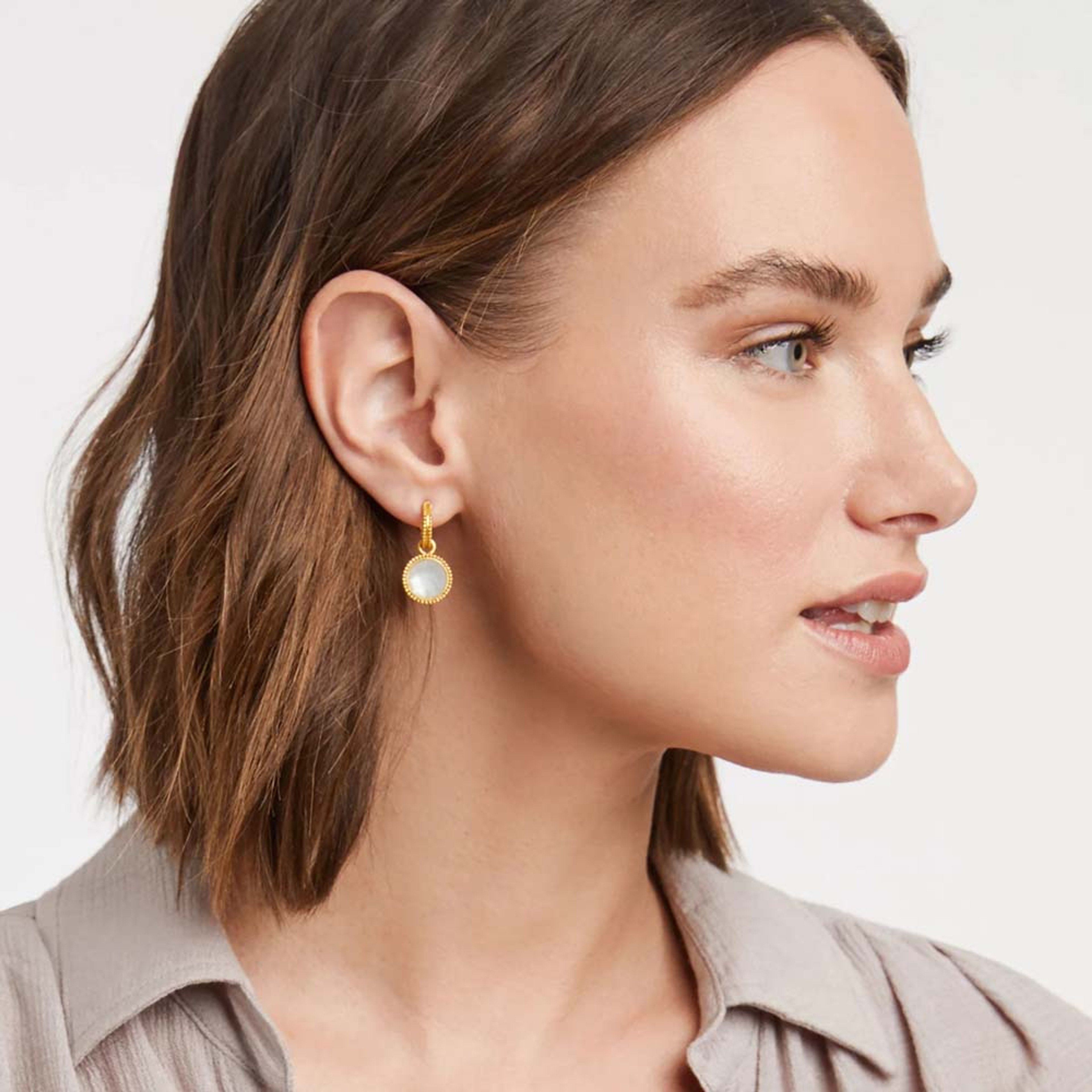 One earring, two ways to wear it—one side features a glittering gemstone, while the reverse side features a fleur-de-lis intaglio.