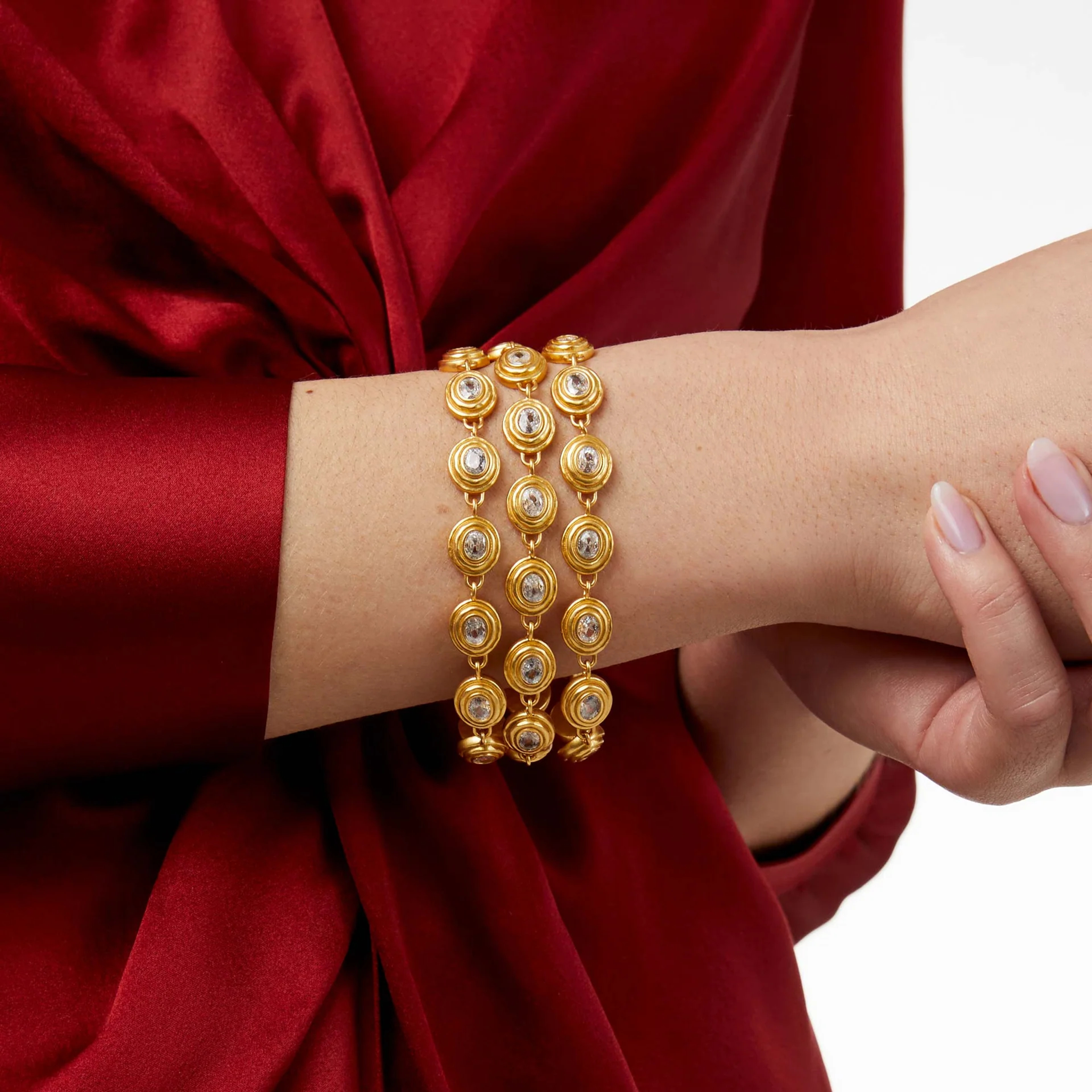 Navette and oval-shaped links catch the eye with alternating embellishments, finished with a richly ornamented toggle.