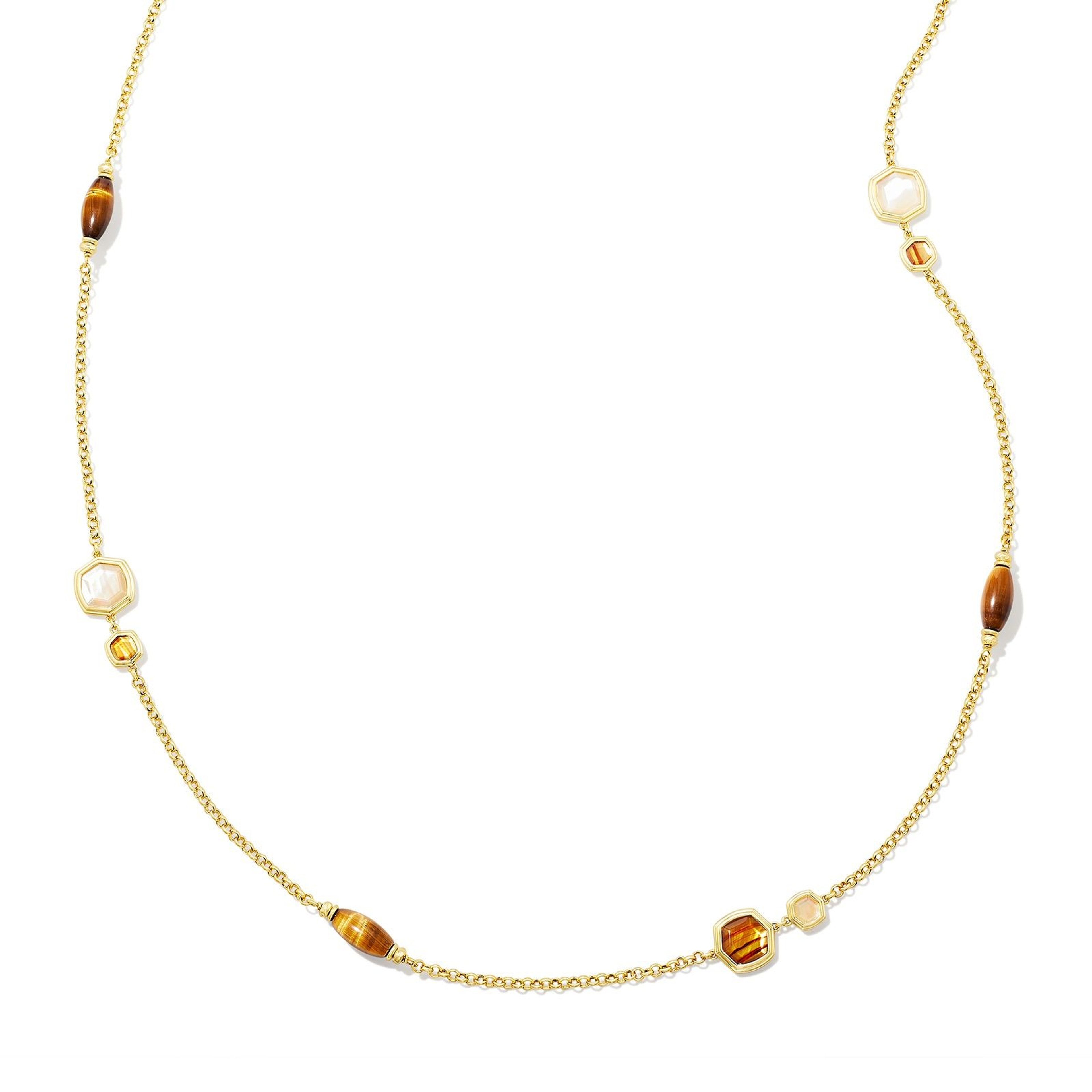 This gorgeous layer is begging to be added to your necklace collection. Our Monica Gold Long Strand Necklace in Brown Mix features a stunning mix of materials in a variety of shapes, and the length lets you wear it long or double it up—the choice is yours.