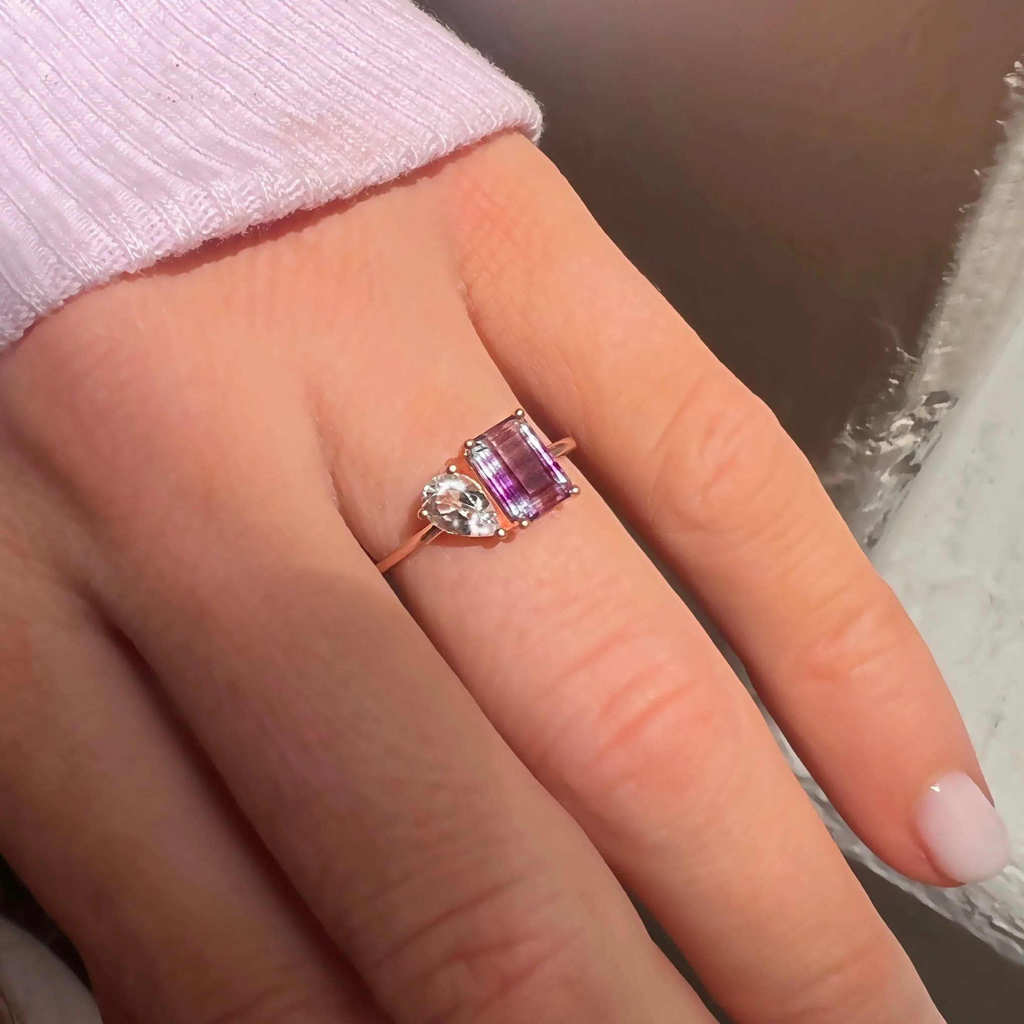 La Kaiser Toi & Moi 9K Rose Gold Fluorite & Topaz Ring