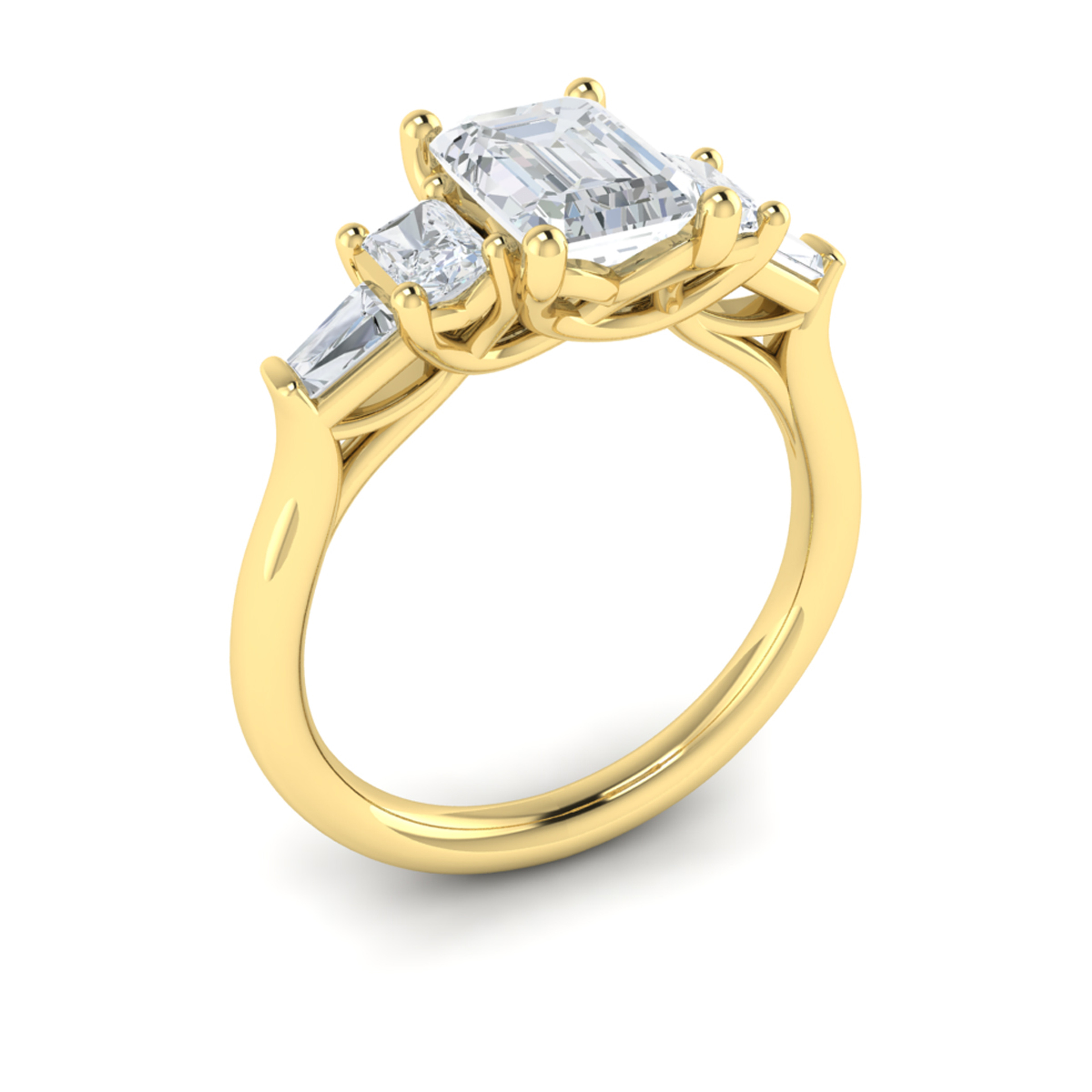 Lena Bridal Five-Stone Engagement Ring with an Emerald Cut center stone featuring 0.65 total carats of accent diamonds
