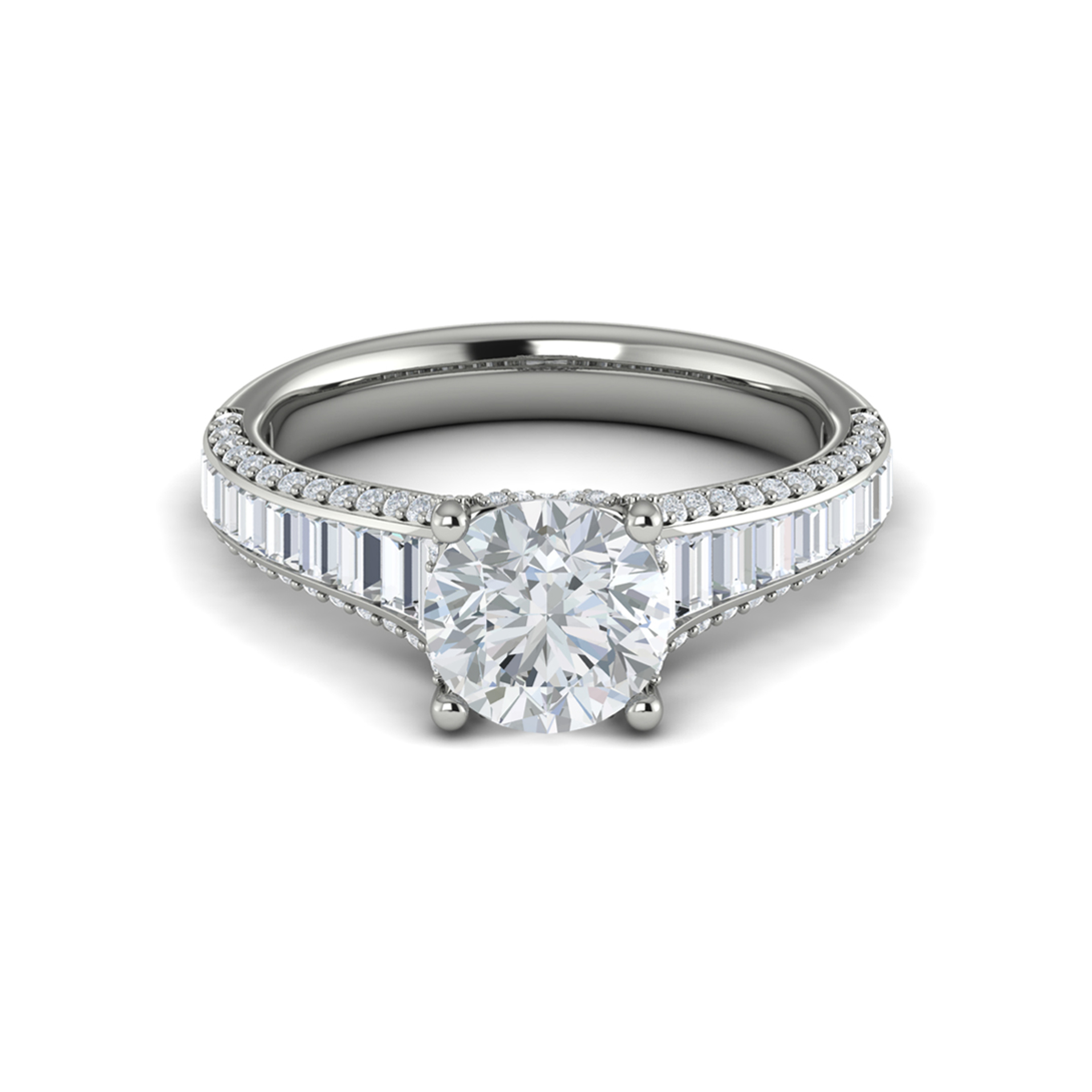 Setting only (center stone sold separately). Image shows a 1 carat round center stone.