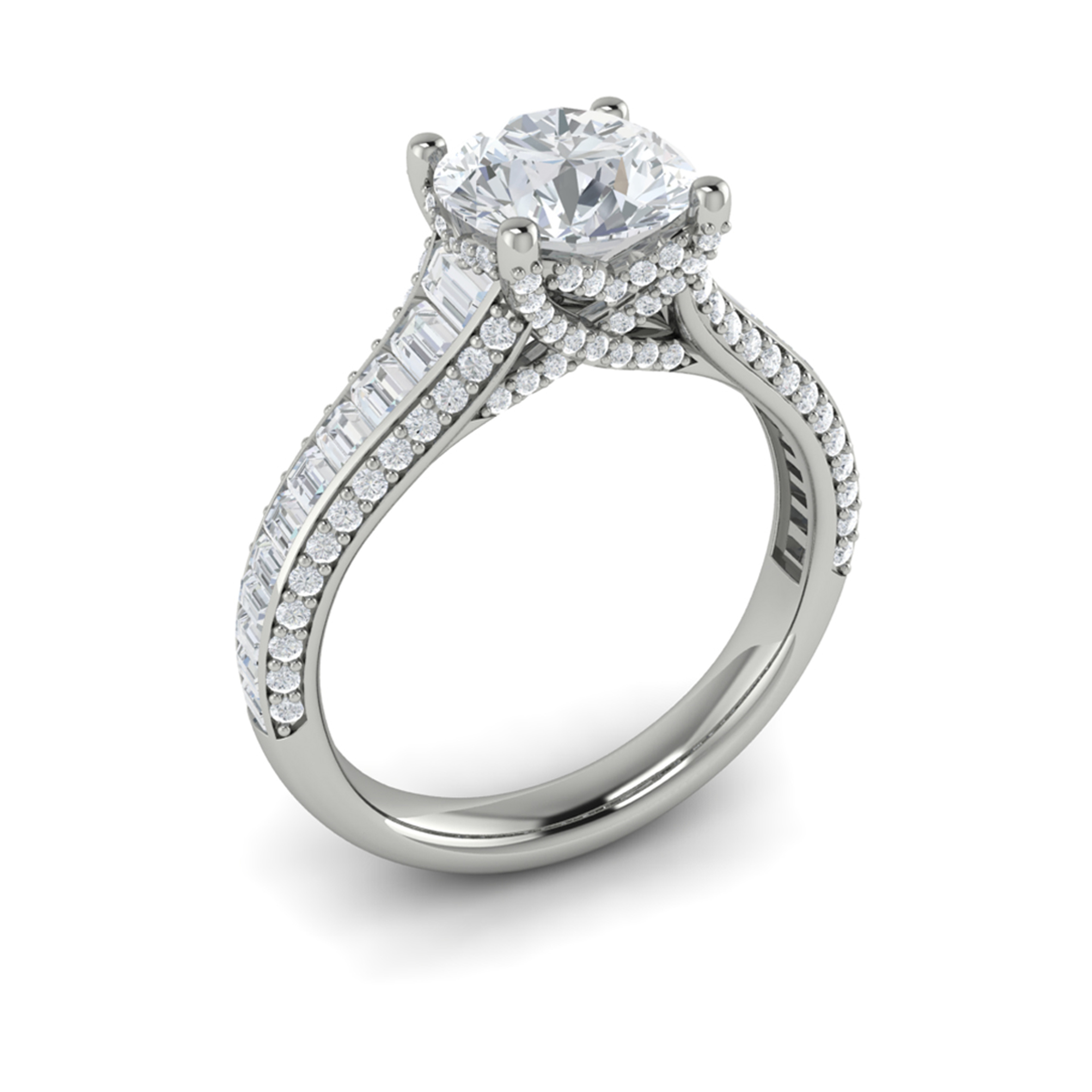 Our Lenora Channel Set Hidden Halo Straight Setting showcases a seamless channel setting, cradling each diamond with meticulous precision. Hidden beneath the central stone, a captivating halo adds a touch of mystery and brilliance, creating a breathtaking interplay of light and sparkle.