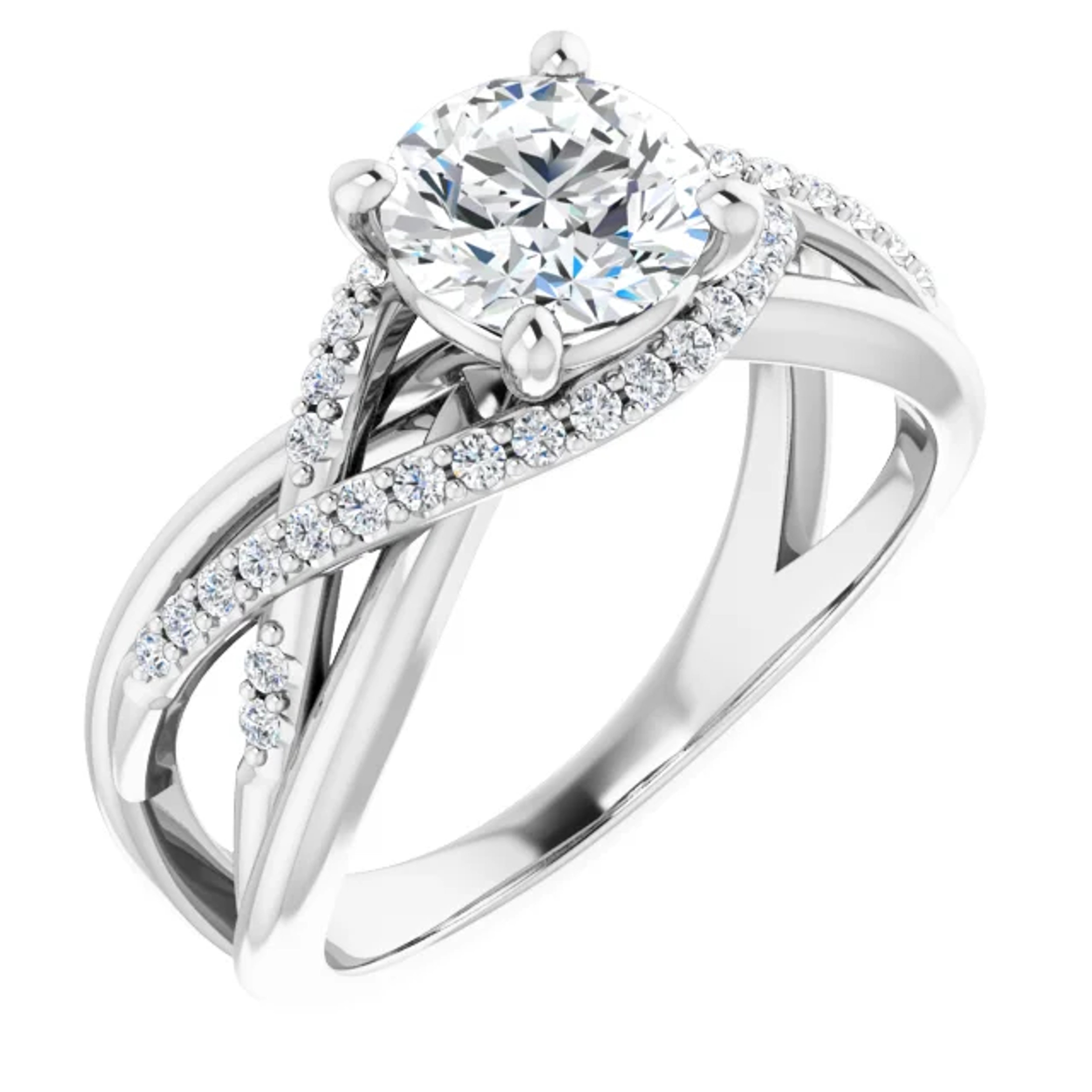 Center stone sold separately. Image shows a 1 carat round cut center stone.