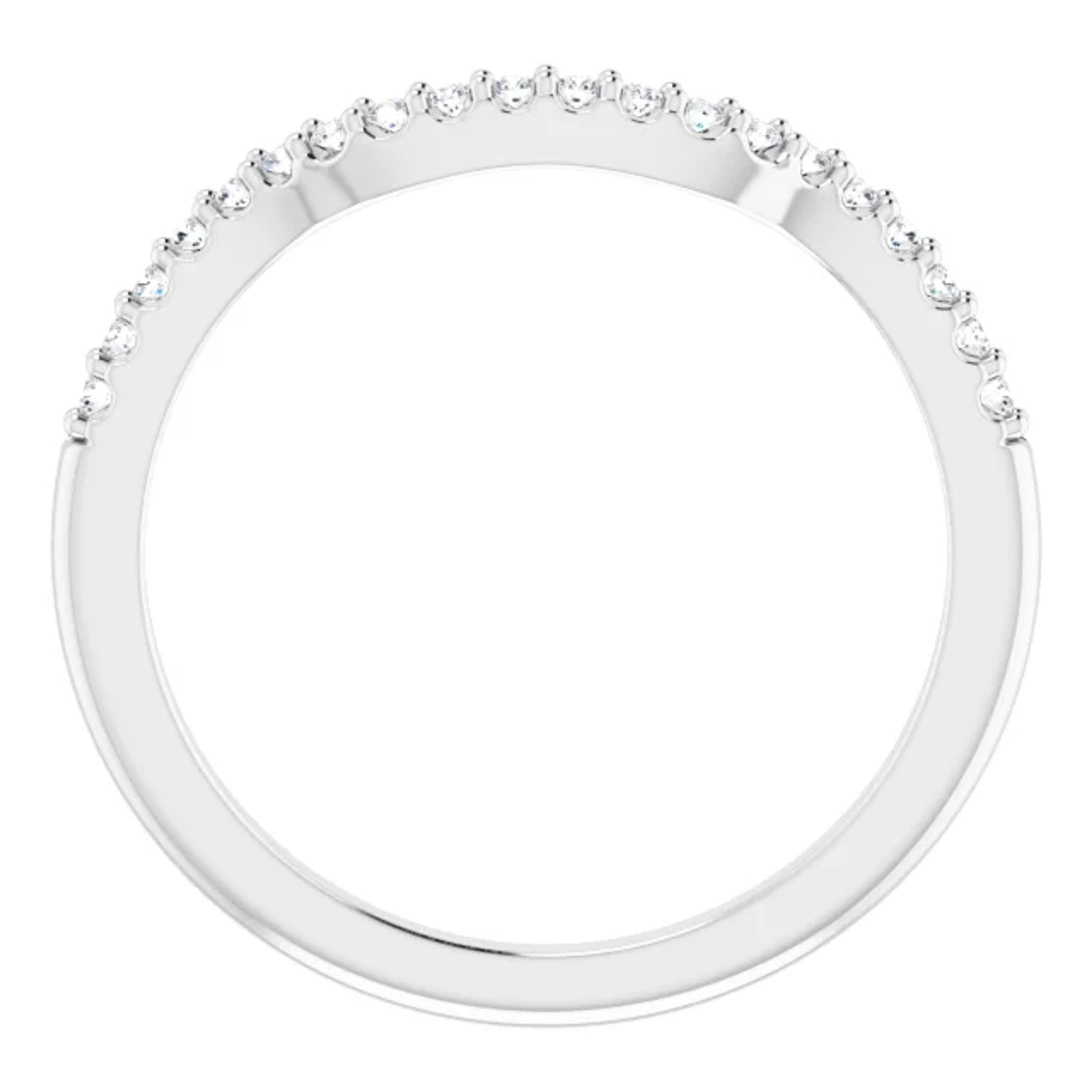 Designed to perfectly complement your engagement ring, the Lorena Diamond Curved Wedding Ring features a gracefully arched shape that nestles your main stone with unparalleled grace. It's like a loving hug for your most cherished symbol of love and commitment. The curve of this ring reflects the winding path of your shared journey, always connecting, always in harmony.