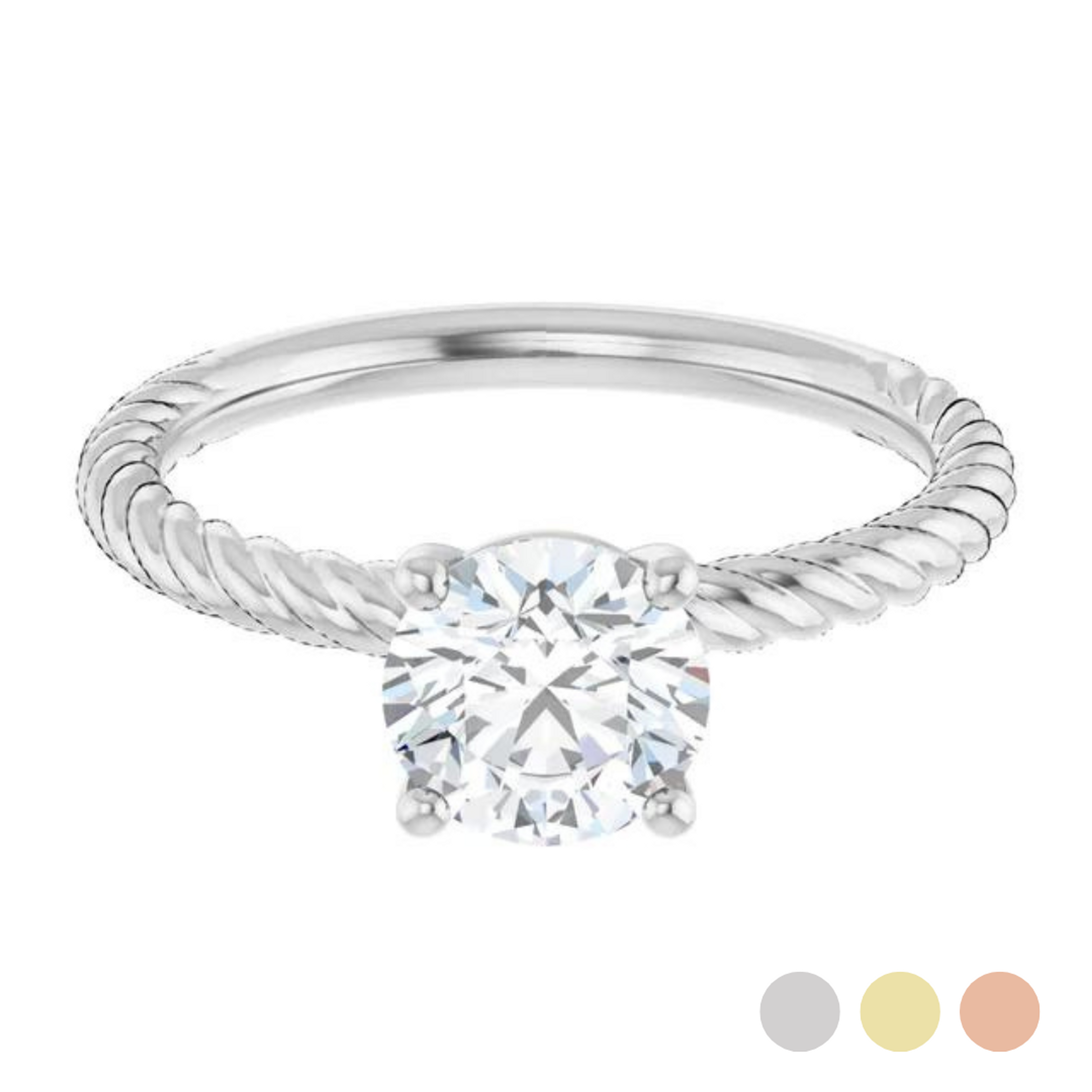 If you and your loved one enjoy being out on the water, why not give them a ring that reminds them of those nautical times? This cathedral engagement ring setting features a brilliant center stone of your choice, and the perfectly polished band is elegantly twisted to resemble a rope. Don't miss the hidden diamond detail just below the center stone!