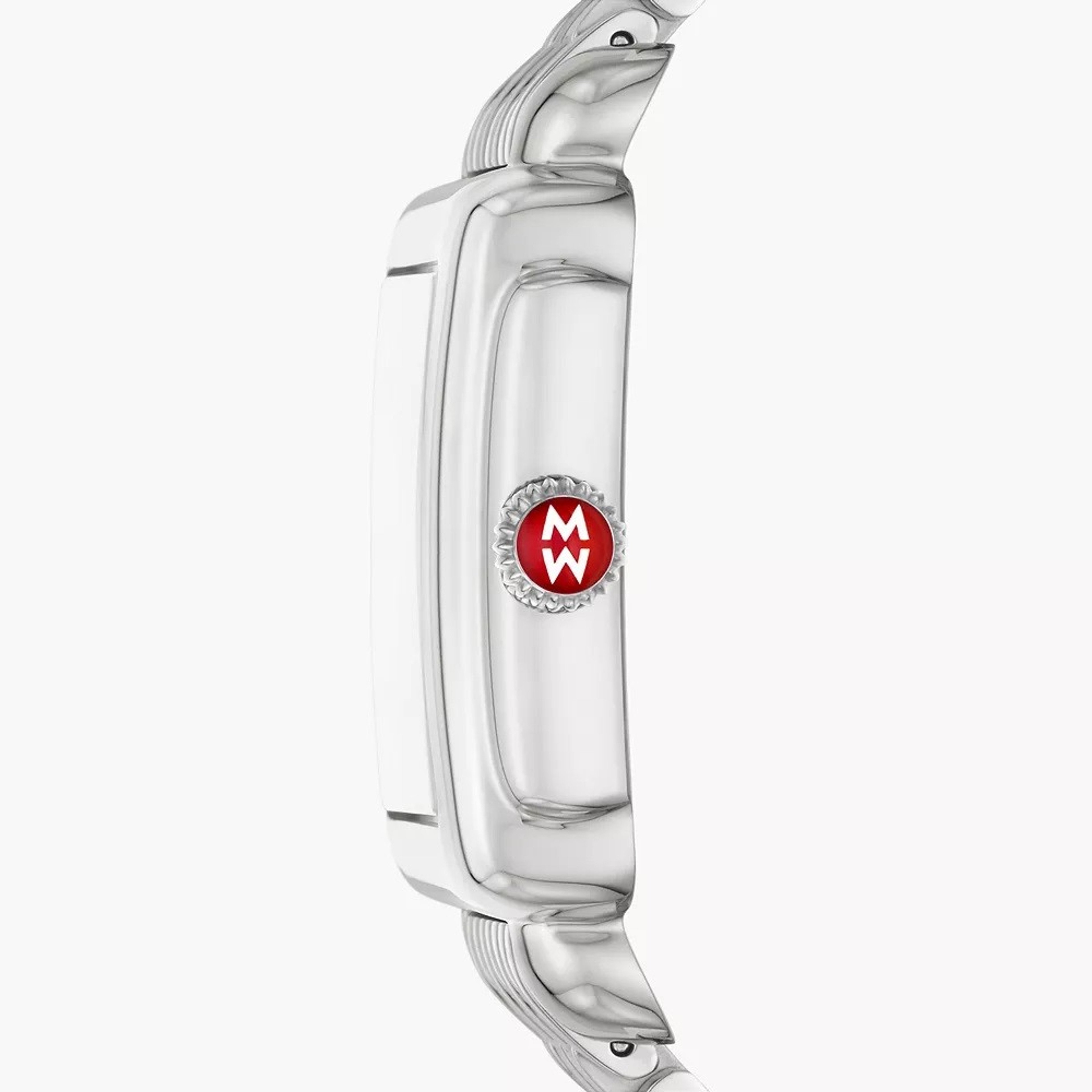 This stainless steel Deco Madison Mid shines with 40 hand-set diamonds atop the silver white sunray dial. The stainless steel bracelet is made specifically for the Deco Madison Mid collection and is interchangeable with any 16mm MICHELE strap.