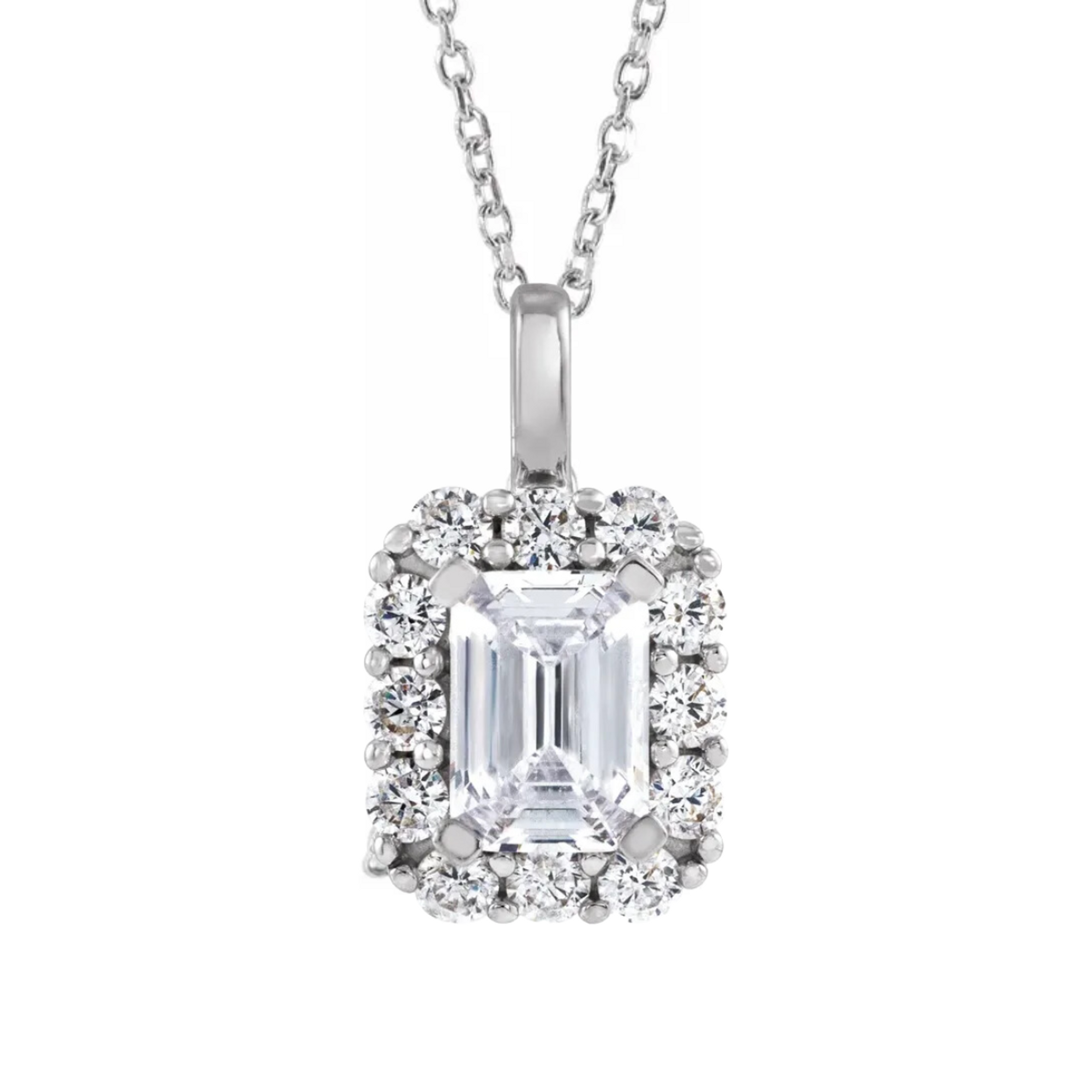The emerald is embraced by a mesmerizing halo of lab-grown diamonds, each meticulously placed to accentuate the allure of the emerald diamond. Whether it's a special occasion or a casual day out, this necklace effortlessly elevates your look, adding a touch of sophistication to any outfit.