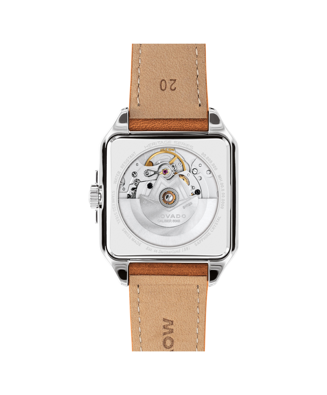 A century in the making, The Heritage 1917 revives Movado’s Art Deco era square watch with refined geometry and stylized Arabic numerals.